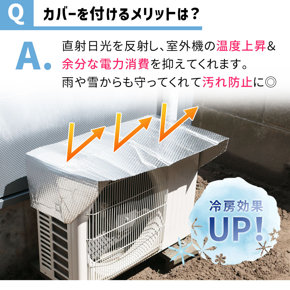 夏の強烈な太陽光や直射日光は、室外機の表面温度を高温にし、空調効率を著しく低下させます。本製品は、太陽熱カット・遮光・遮熱に優れた反射板構造を採用。冷房効率の向上に貢献し、結果的に電力削減や電気料金の節約につながります。eco意識の高い方や、節電グッズを探している方にも最適なアイテムです。
