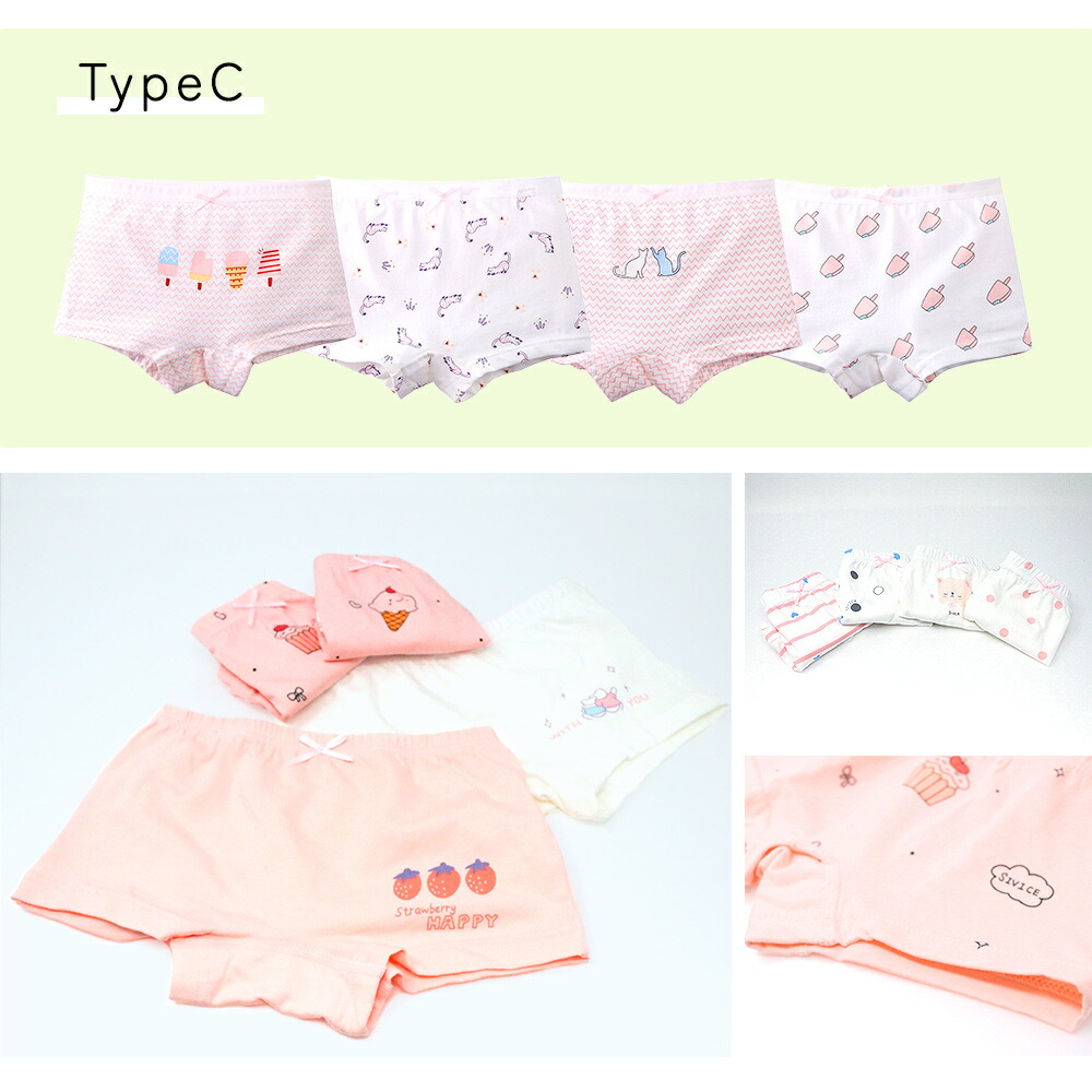 ガールズショーツ 4枚セット キッズ 女の子 キッズショーツ 女児ショーツ パンツ 下着 綿 コットン 女子 ボクサーパンツ 女児 子供 子ども 女の子用 かわいい おしゃれ 可愛い 子供ショーツ ガールズ ボクサー 子供用 新入学 プレゼント 幼稚園 TN-GRUW