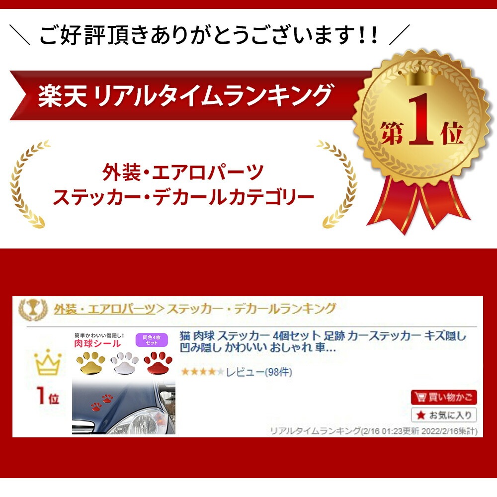 猫 肉球 ステッカー 4個セット 足跡 カーステッカー キズ隠し 凹み隠し かわいい おしゃれ 車 シール 犬 カー用品 カーアクセサリー 雑貨 自動車 ER-TFPD_2M