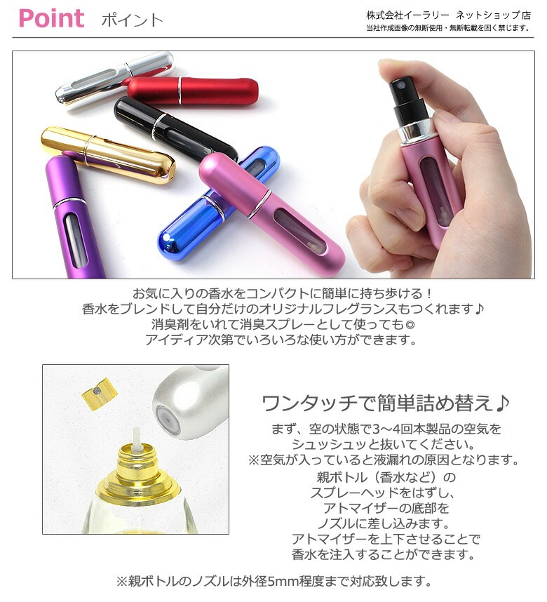 香水 アトマイザー 香水アトマイザー 携帯用 香水用 クイックアトマイザー 香水スプレー ワンタッチ補充 女子力 エチケット タバコの匂い パフューム ER-PFBL