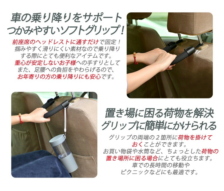 シートグリップ/補助グリップ/タクシーグリップ/車/乗り降り/便利/アシストグリップ/高齢者/子供/手すり/自動車/グリップ/やわらかタイプ/乗車補助/取っ手/補助/お年寄り/持ちやすい/滑り防止/乗り降りをサポート/後部座席用/ヘッドレスト/装着簡単/滑りにくい/つかみやすい/便利/介助/乗降り