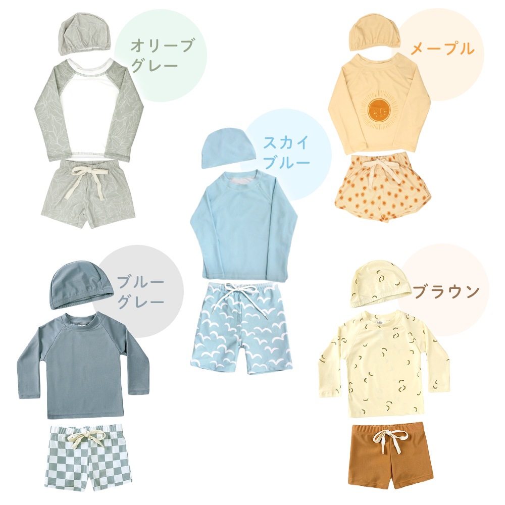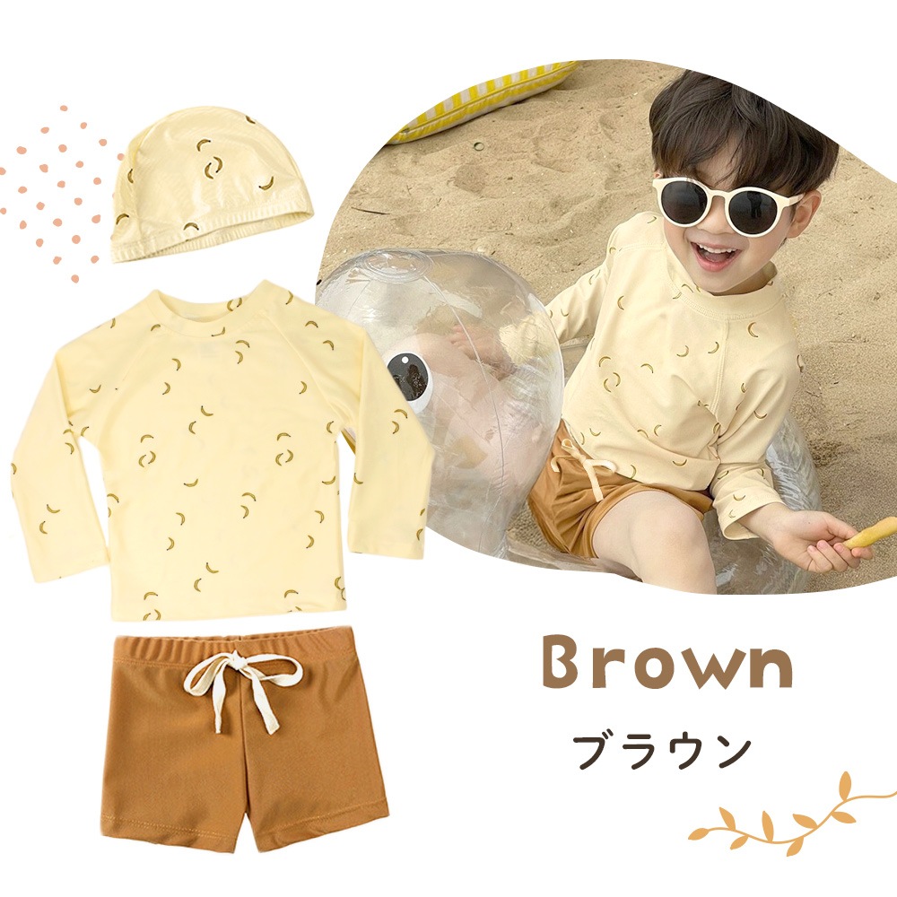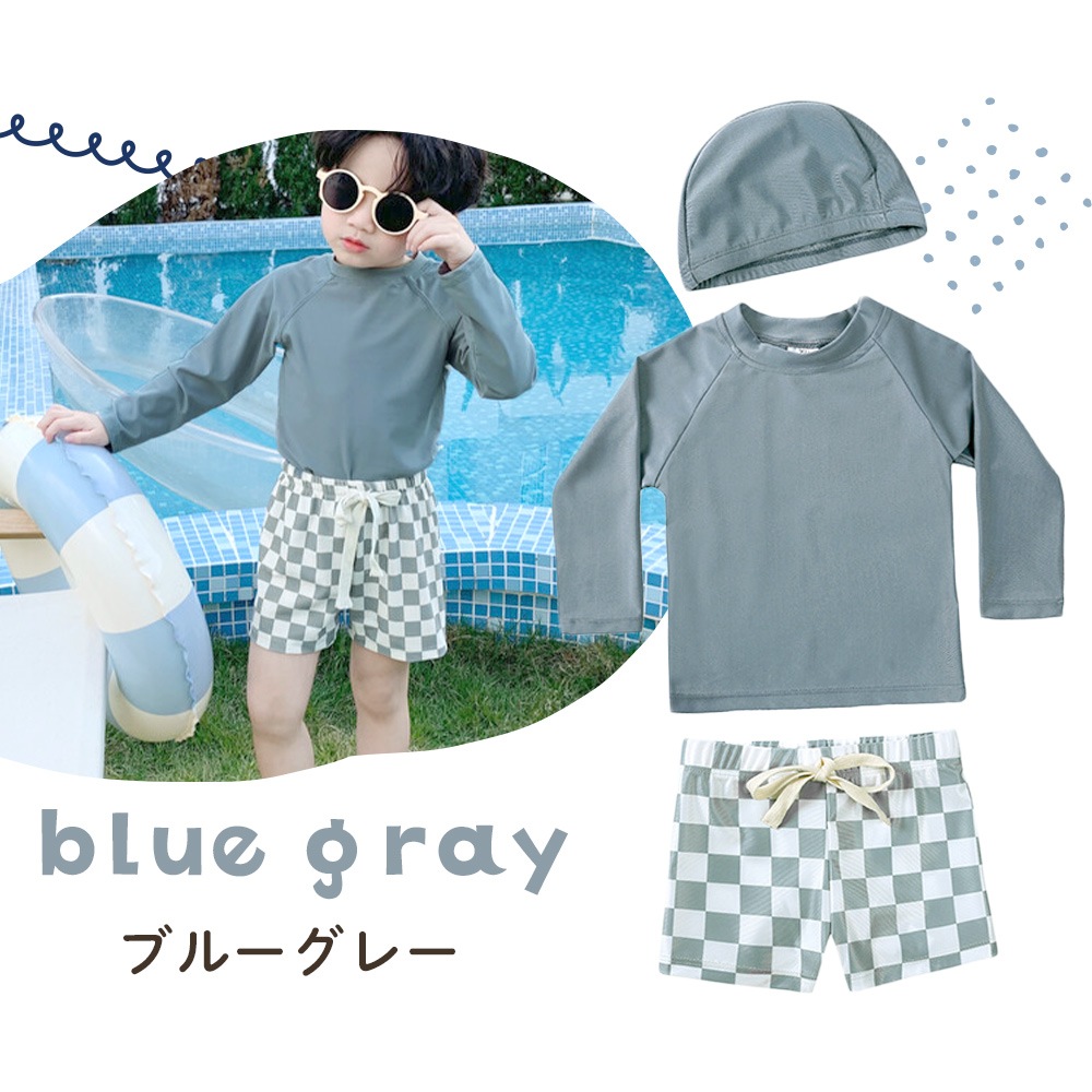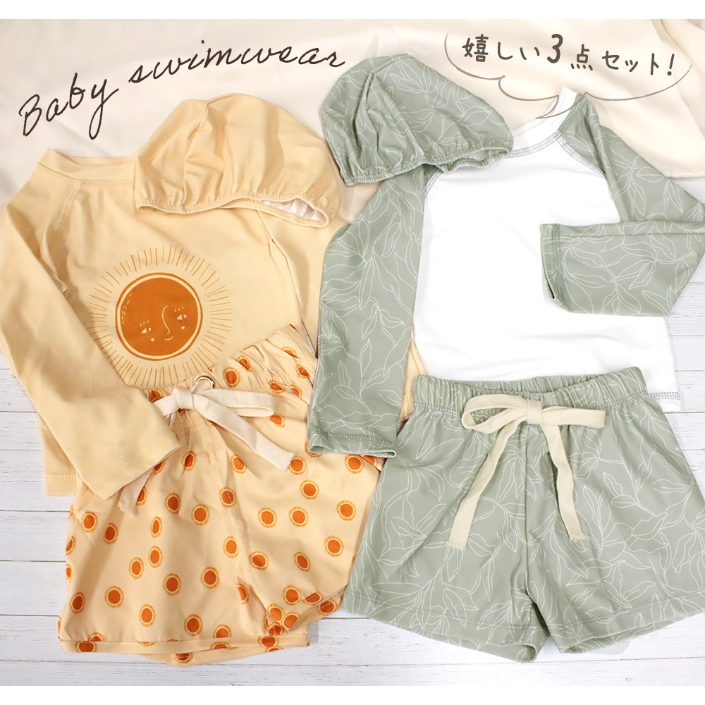 ・おしゃれで実用的!キッズ用ラッシュガード水着3点セット