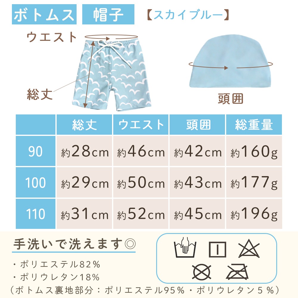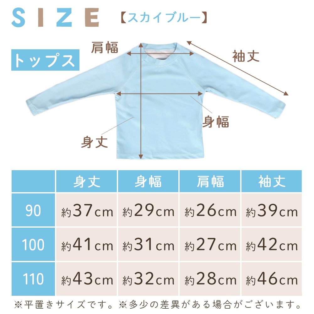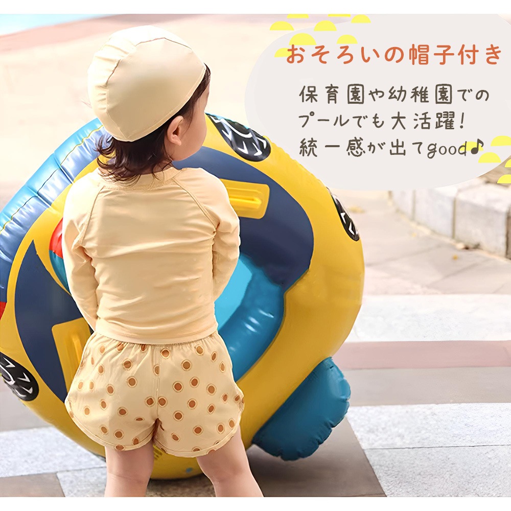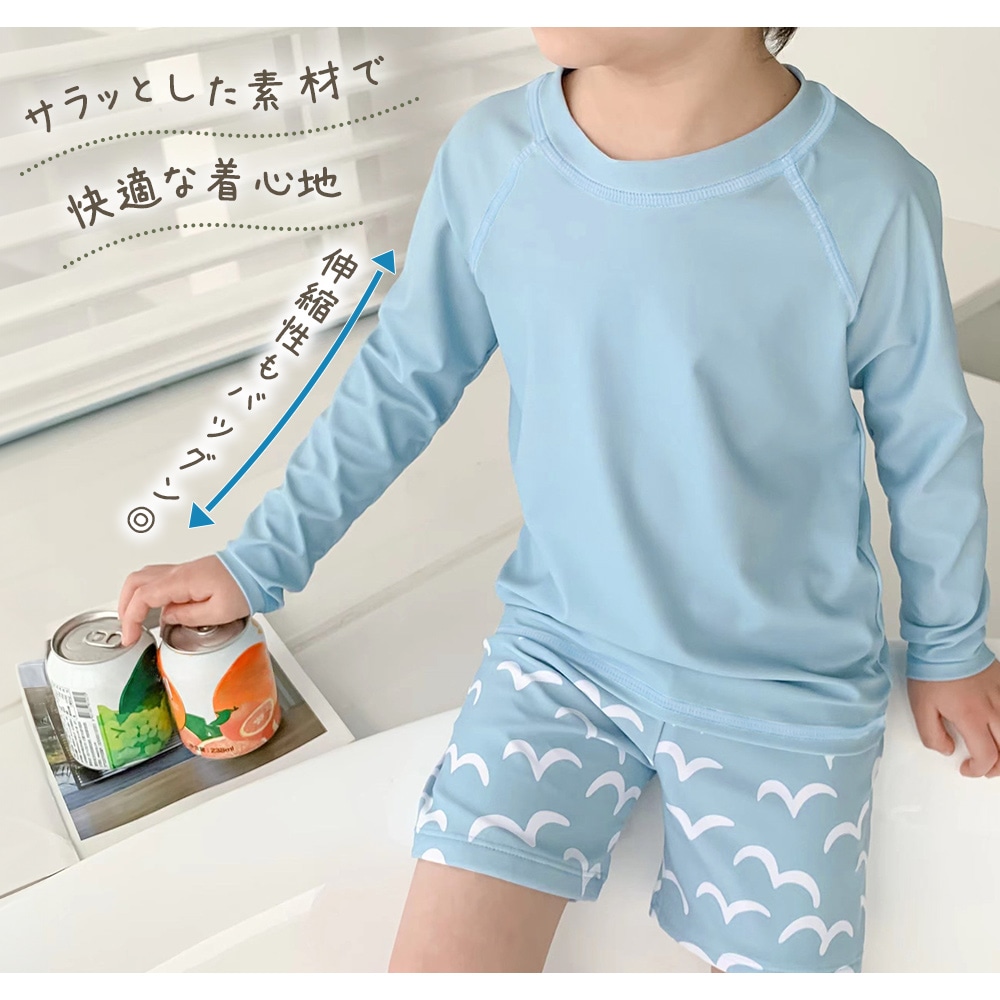 水遊びやスイミング、海水浴や川遊びでも快適に動き回れるよう、伸縮性に優れた素材を使用。上下セットのセパレートタイプなので、お子様の着替えもスムーズ。保育園・幼稚園でのプール遊びやスイミング練習用にも最適です。