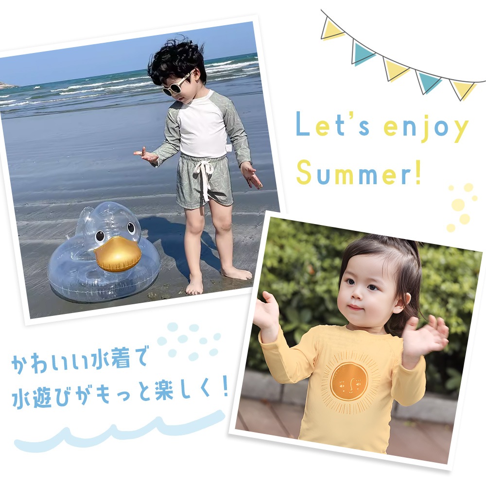 海水浴、プール、川遊び、ビーチでのバカンスなど、夏のレジャーシーンで大活躍。防寒にも役立つラッシュガードで、冷え対策にもなる優れもの。ベビー用・子供用のラッシュガードとして、毎年人気のアイテムです。