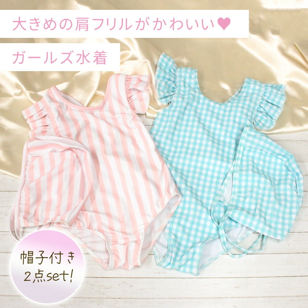 ワンピース水着/水着/ワンピース/こども/子供/帽子付き/フリル/かわいい/子ども/ガールズ/キャップ/セット/キッズ/女児/女の子/保育園/90cm/100cm/110cm/120cm/水泳/海/海水浴/水遊び/練習用/プール/可愛い/ビーチ/スイムグッズ/伸縮/子供用/子供水着/スイミング/ガールズ水着/ジュニア/キッズ水着/女の子水着/学校用水着/幼稚園/キッズみずぎ/スイムウェア/みずぎ/キャミワンピ/入園/90/100/110/120/ストライブ/チェック柄/格子柄/