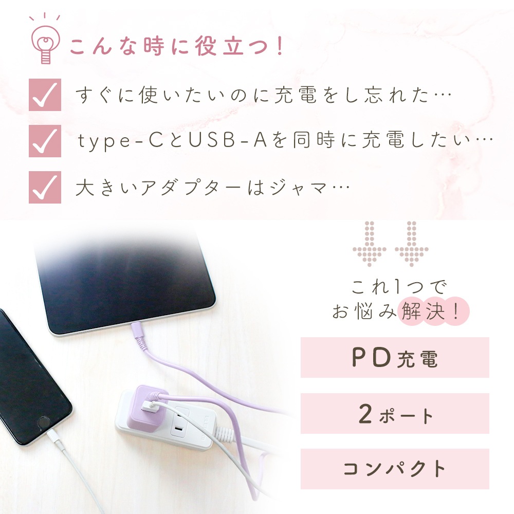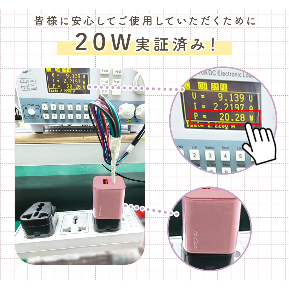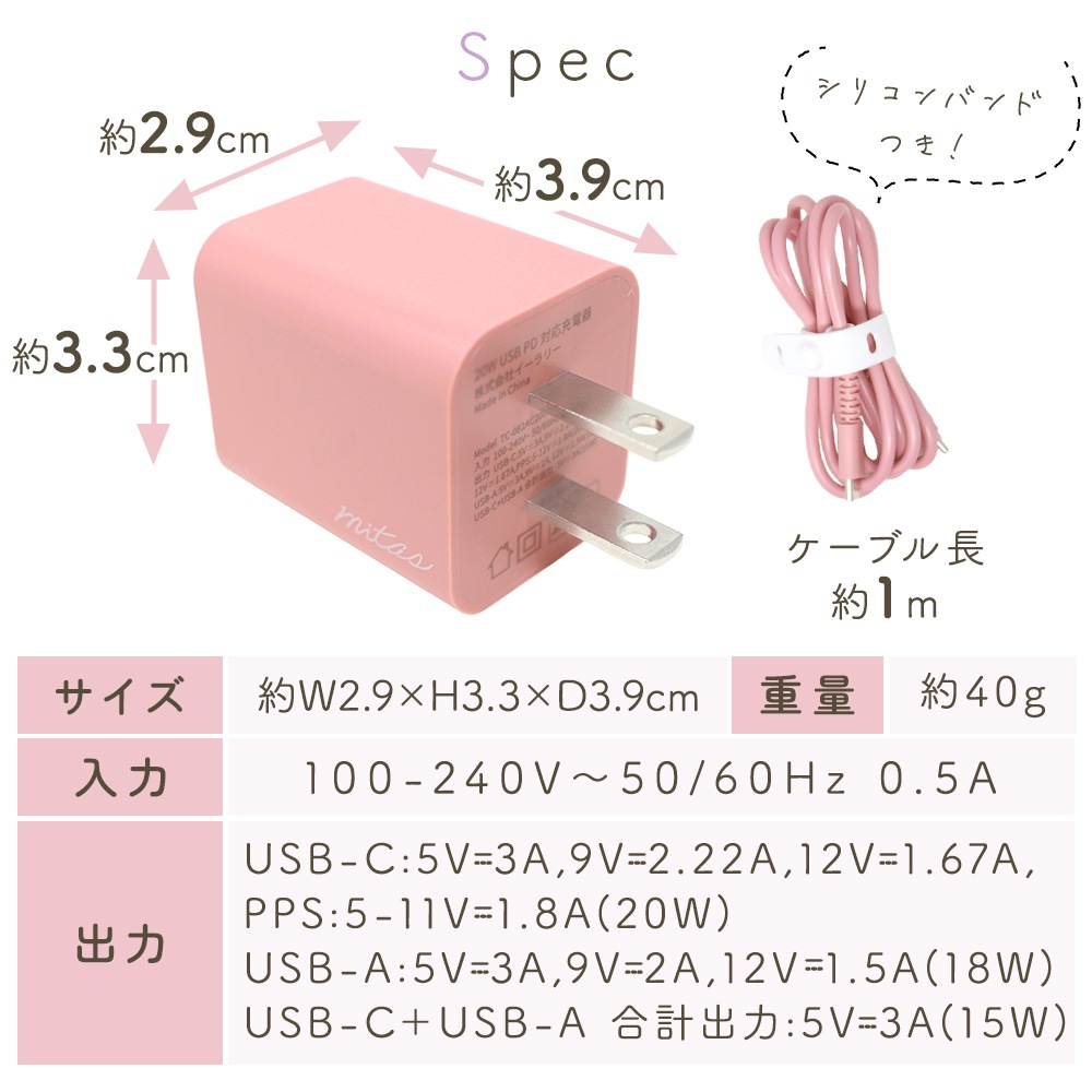 mitas くすみカラー USB充電器 PD Type-C ケーブルセット 急速 ACアダプター 2ポート タイプc Type-A 20W 2口 チャージャー PSE認証 コンセント AC充電器 スマホ
