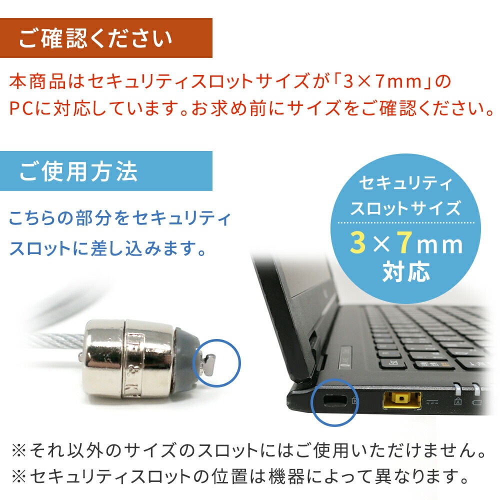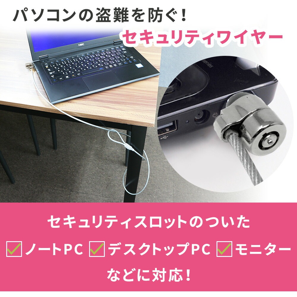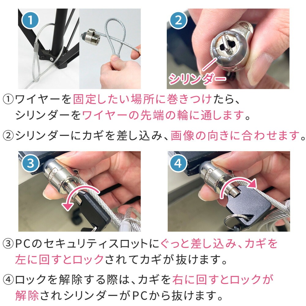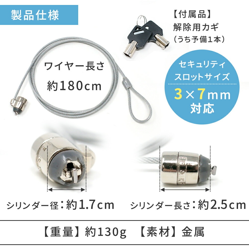 セキュリティ/ワイヤー/シリンダー錠/約1.8m/セキュリティ/ロック/セキュリティスロット/盗難防止/盗難対策/ワイヤーロック/ノートパソコン/デスクトップ/デスクトップパソコン/モニター/パソコン/PC/カフェ/オフィス/事務所/展示場/新幹線/移動/軽量/コンパクト/金属