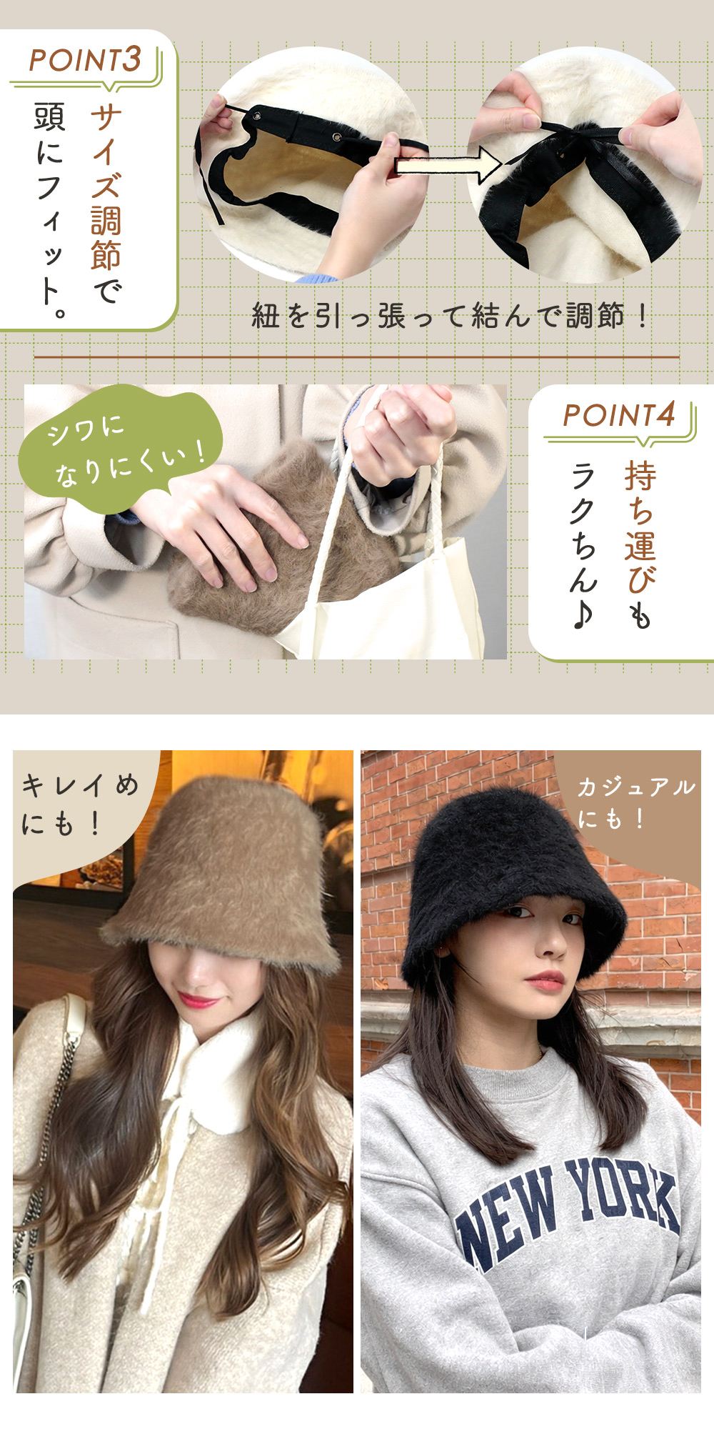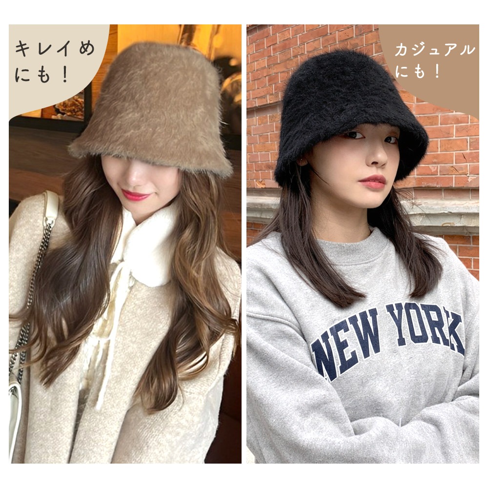 バケットハット シャギー レディース 冬 かわいい フェイク ファー バケハ ハット おしゃれ 保温 防寒 可愛い サイズ調節 折りたたみ 軽量 フリーサイズ