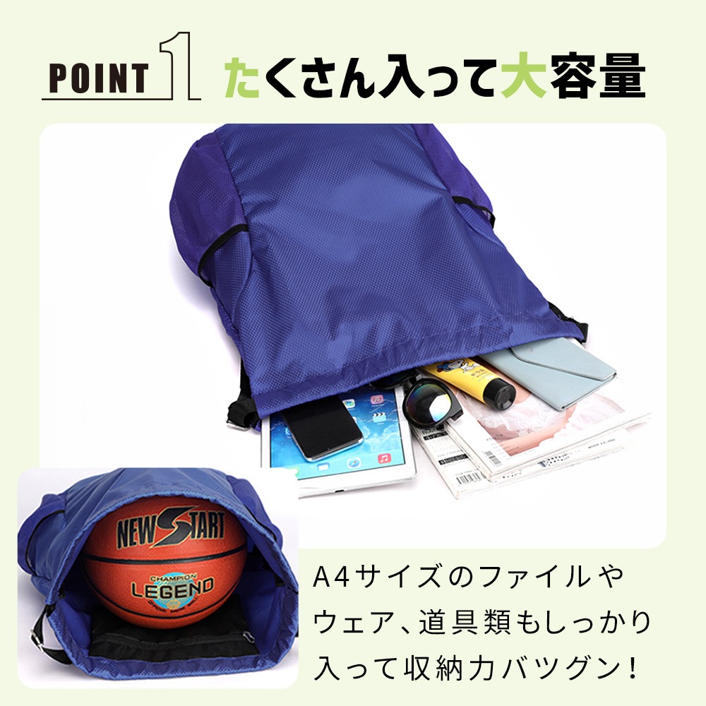 ナップザック 撥水 リュック 撥水素材 軽量 大容量 A4 男性 女性 巾着リュック 巾着袋 巾着 スイミング ジム 温泉 撥水バッグ ナップサック リュックサック