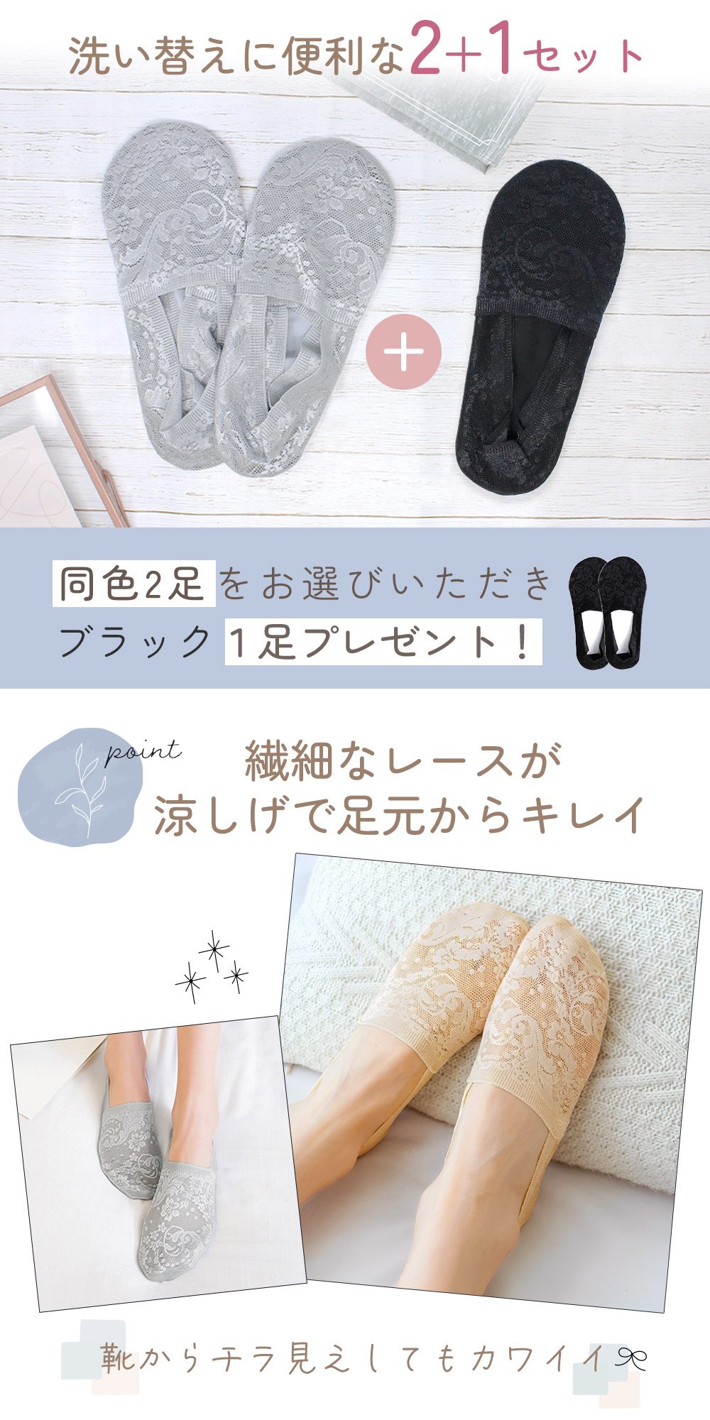 レディースソックス/レース/2足セット/おまけ付き/1足/カバーソックス/ソックス/夏レース/洗い替え/洗える/かわいい/滑り止め/脱げにくい/レディース/女性/おしゃれ/スニーカー/パンプス/薄手/通気性/薄い/おしゃれ/靴下/くつ下/くつした/フットカバー/ショートソックス/インナーソックス/透け感/春/夏/プレゼント/贈り物/夏用/春用/小物/雑貨/シースルー/お洒落/夏用ソックス/春用ソックス/TN-SKTO/