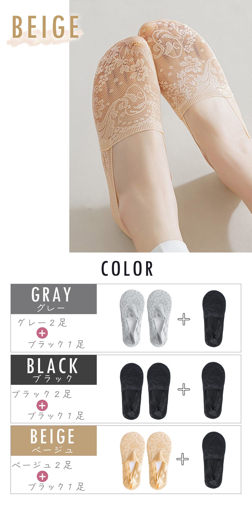 レディースソックス レース 2+1足セット カバーソックス ソックス 夏レース 洗い替え 洗える かわいい 滑り止め 脱げにくい レディース 女性 おしゃれ スニーカー パンプス 薄手 薄い おしゃれ 靴下 くつ下 くつした フットカバー ショートソックス TN-SKTO