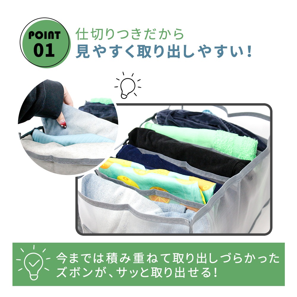 ズボン収納ケース/ズボン収納ボックス/衣類収納/衣類収納ボックス/衣類収納ケース/仕切り/折りたたみ/仕切り付き/7着収納/収納ケース/収納/ケース/ズボン/パンツ/レギンス/洋服収納ボックス/衣替え/衣装ボックス/衣類ボックス/Tシャツ/タオル/収納グッズ/7枚収納可能//引き出し/押し入れ/ベッド下/クローゼット/リビング/寝室/スリム/整理整頓/新生活/タイツ収納/ハイソックス収納/タンス収納/TN-PNTSC/