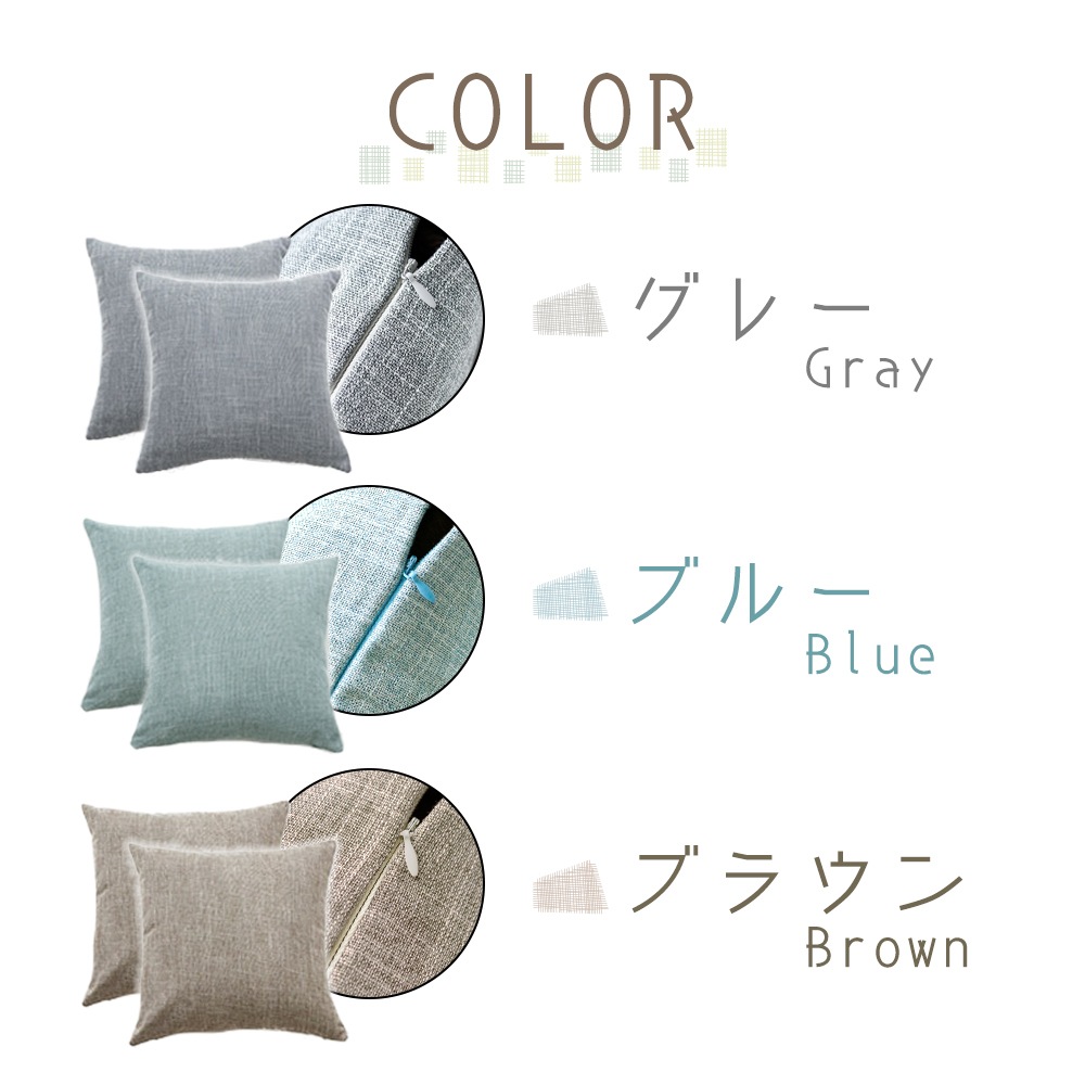 クッションカバー 2枚セット 45×45cm リネン おしゃれ 綿 夏 さらさら 正方形 角形 カジュアル 無地 カフェ 洗える 汚れ防止 寝室 ヌードクッション用 カバー