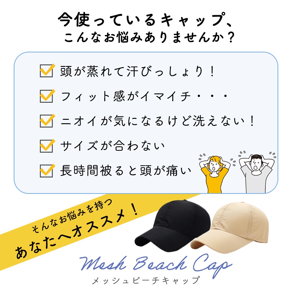 ビーチキャップ/大人/メッシュ/速乾/帽子/キャップ/レディース/メンズ/ユニセックス/夏/春/涼しい/シンプル/通気性/サイズ調節/日除け/日差し対策/メッシュキャップ/サーフキャップ/無地/海/海水浴/プール/日焼け対策/アウトドア/キャンプ/登山/熱中症対策/BBQ/散歩/お出かけ/ベーシック/農業/日よけ/サンハット/男性/女性/テニス/ランニング/スポーツ/TN-BHCP/