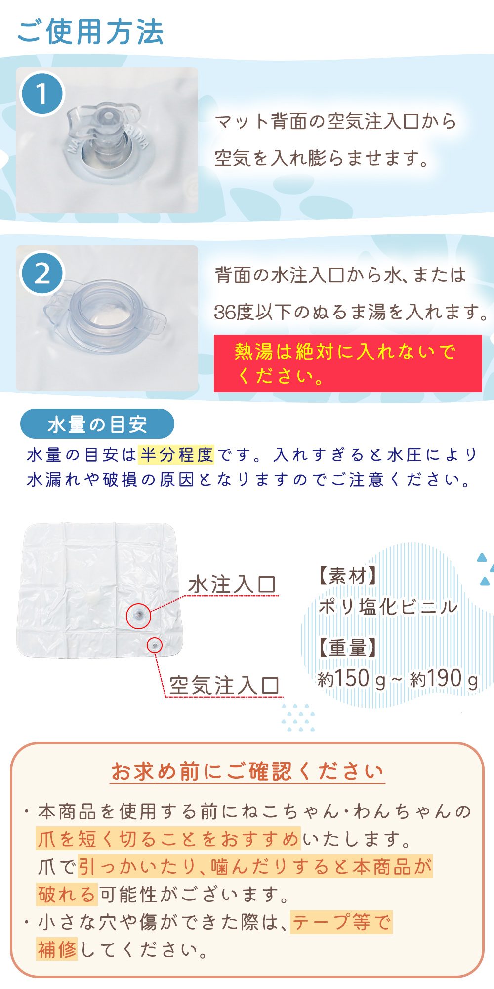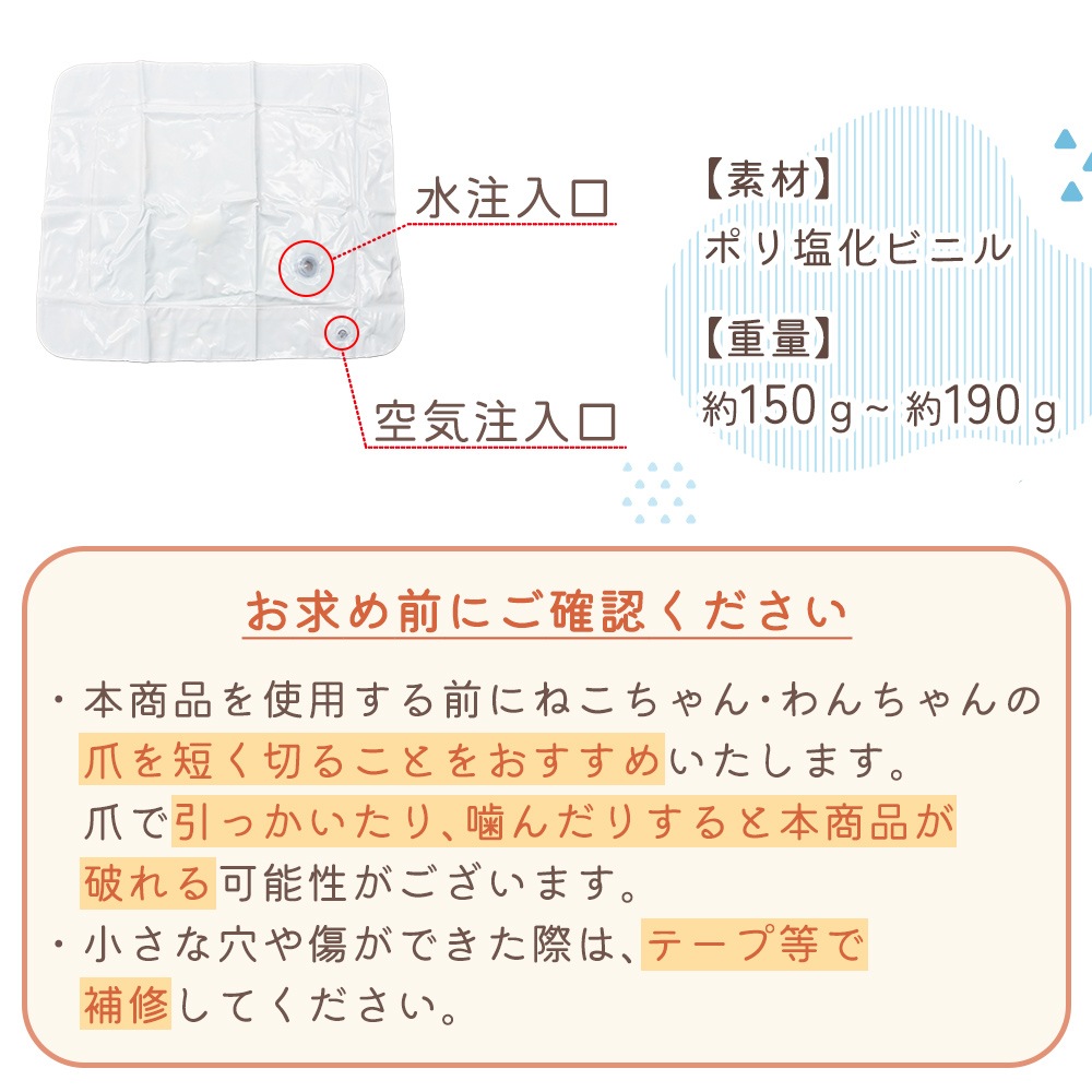 水の入った内部構造により、ひんやりとした涼感が広がり、ネコや犬も大喜び。
