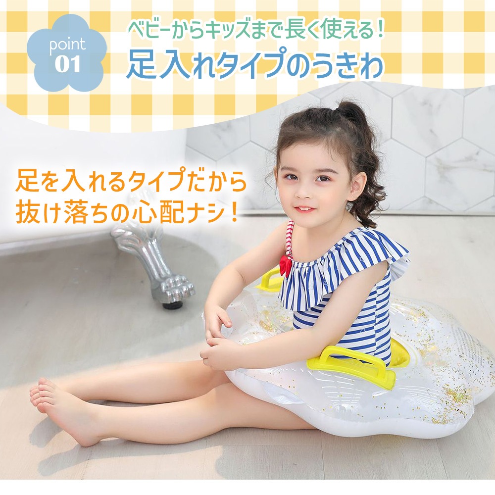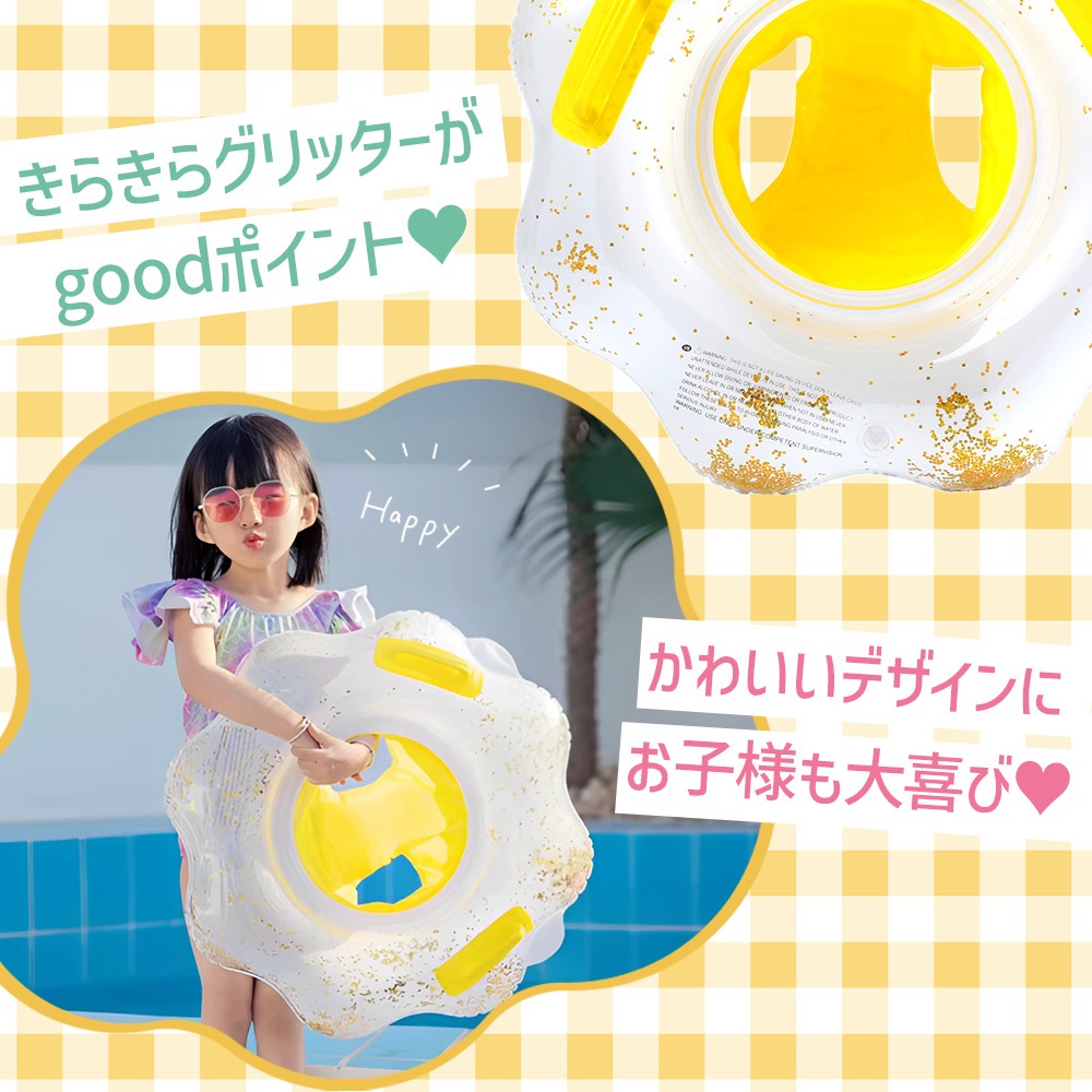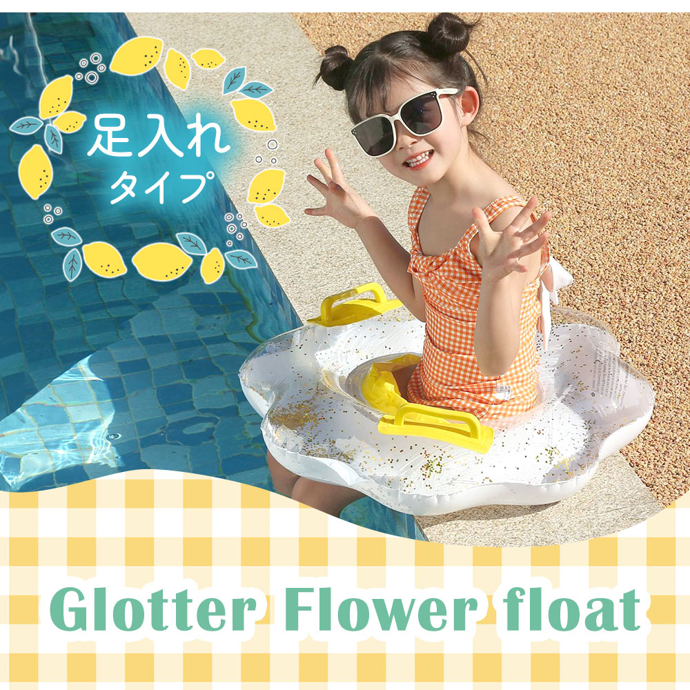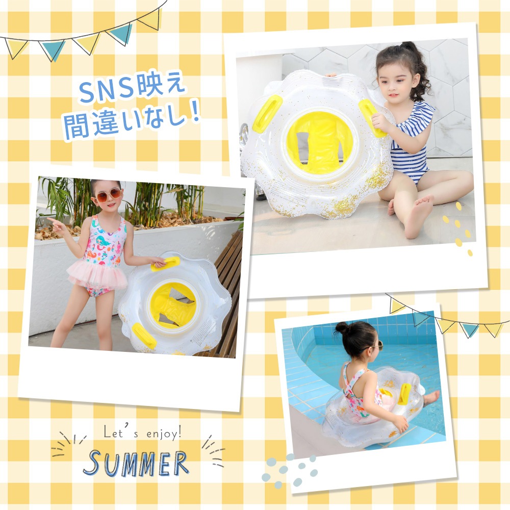 浮き輪 フラワー 子供 キッズ クリアカラー 足入れタイプ 取っ手付き キラキラ フロート スイムリング おしゃれ インスタ SNS映え 浮き具 水泳 ビーチ 海 海水浴