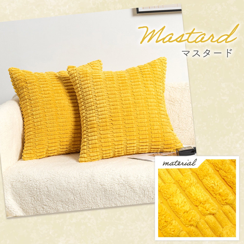 クッションカバー 45×45cm 2枚セット コーディロイ調 おしゃれ 正方形 中材 インテリア ソファクッション シンプル 洗える ファスナー 冬 ふわふわ モダン 布