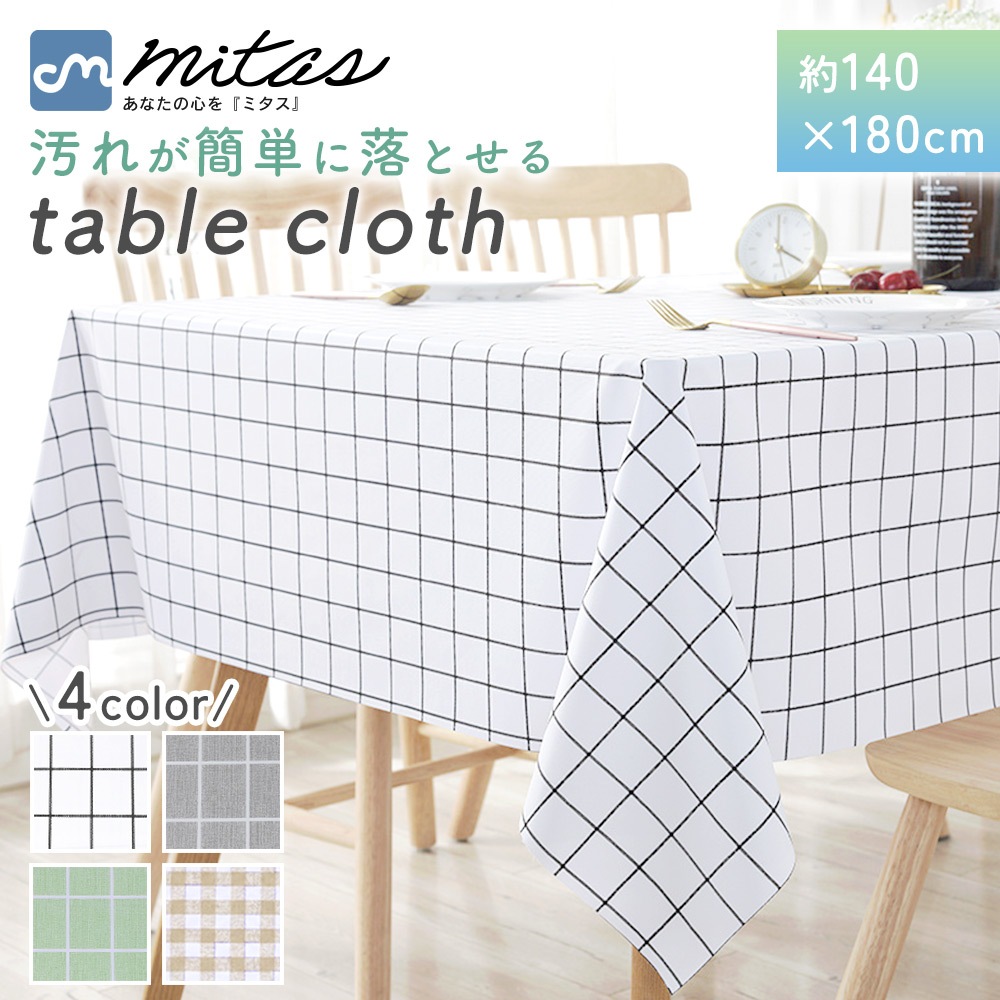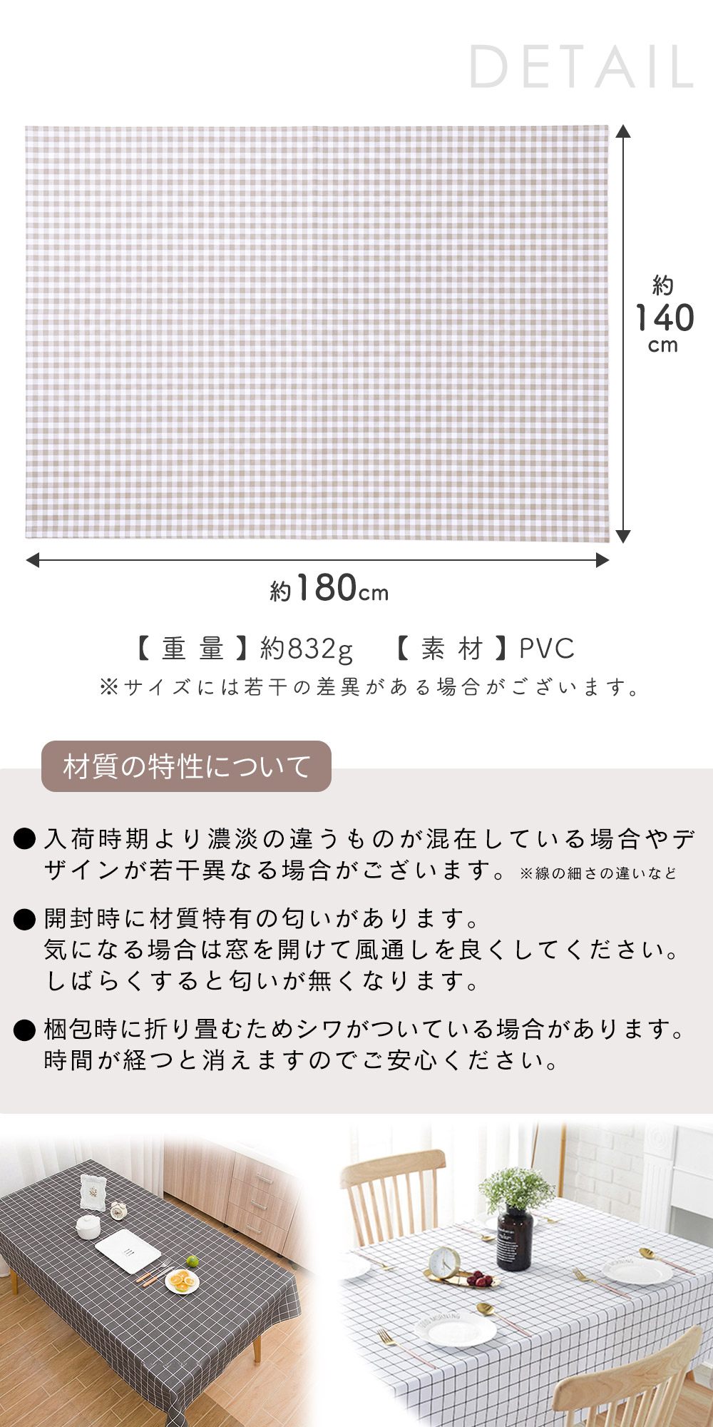 テーブルクロス 撥水 140×180cm ビニール 耐熱 すべり止め 長さ調節 撥水加工 北欧 おしゃれ 格子柄 チェック柄 140 180 140cm 180cm 食卓カバー カバー 長方形 テーブルマット 傷防止 PVC カット 汚れ防止 家庭 インテリア TN-TBCH