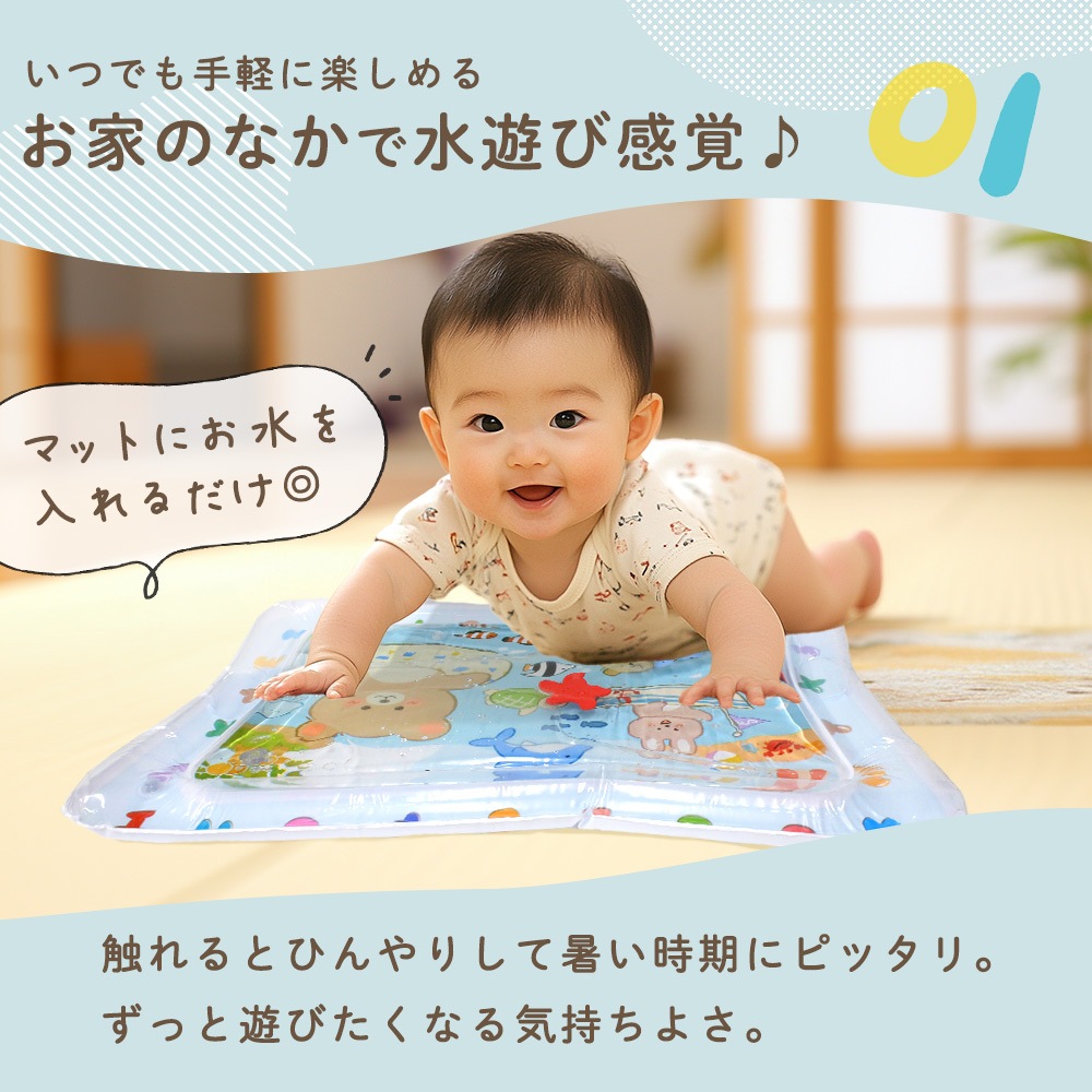 ウォータープレイマット ベビー ウォーターマット プレイマット ひんやり うつ伏せ練習 赤ちゃん ベビー用品 うつ伏せ 腹ばい タミータイム おもちゃ 知育玩具 熱中症対策 カラフル かわいい 濡れない 屋内 乳児 マット TN-WPMT