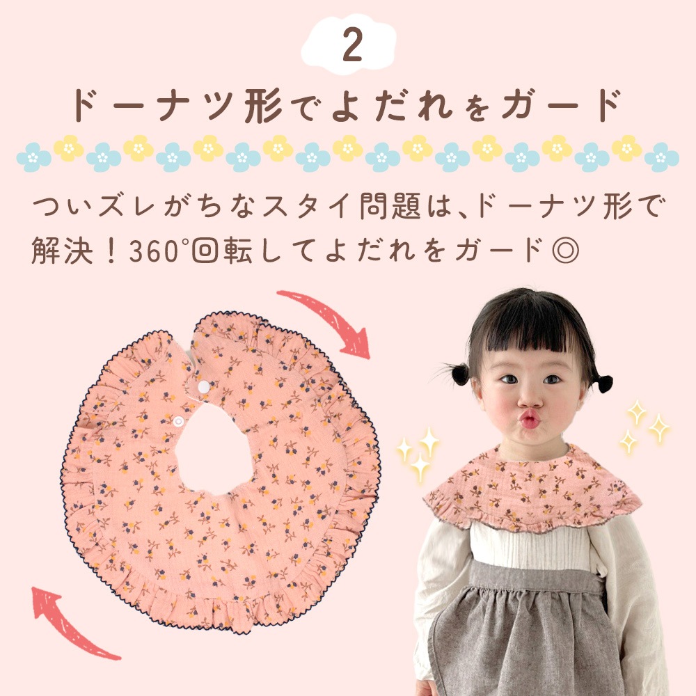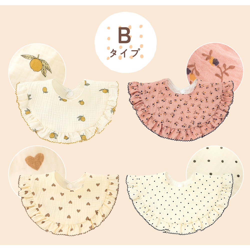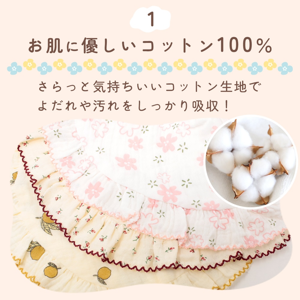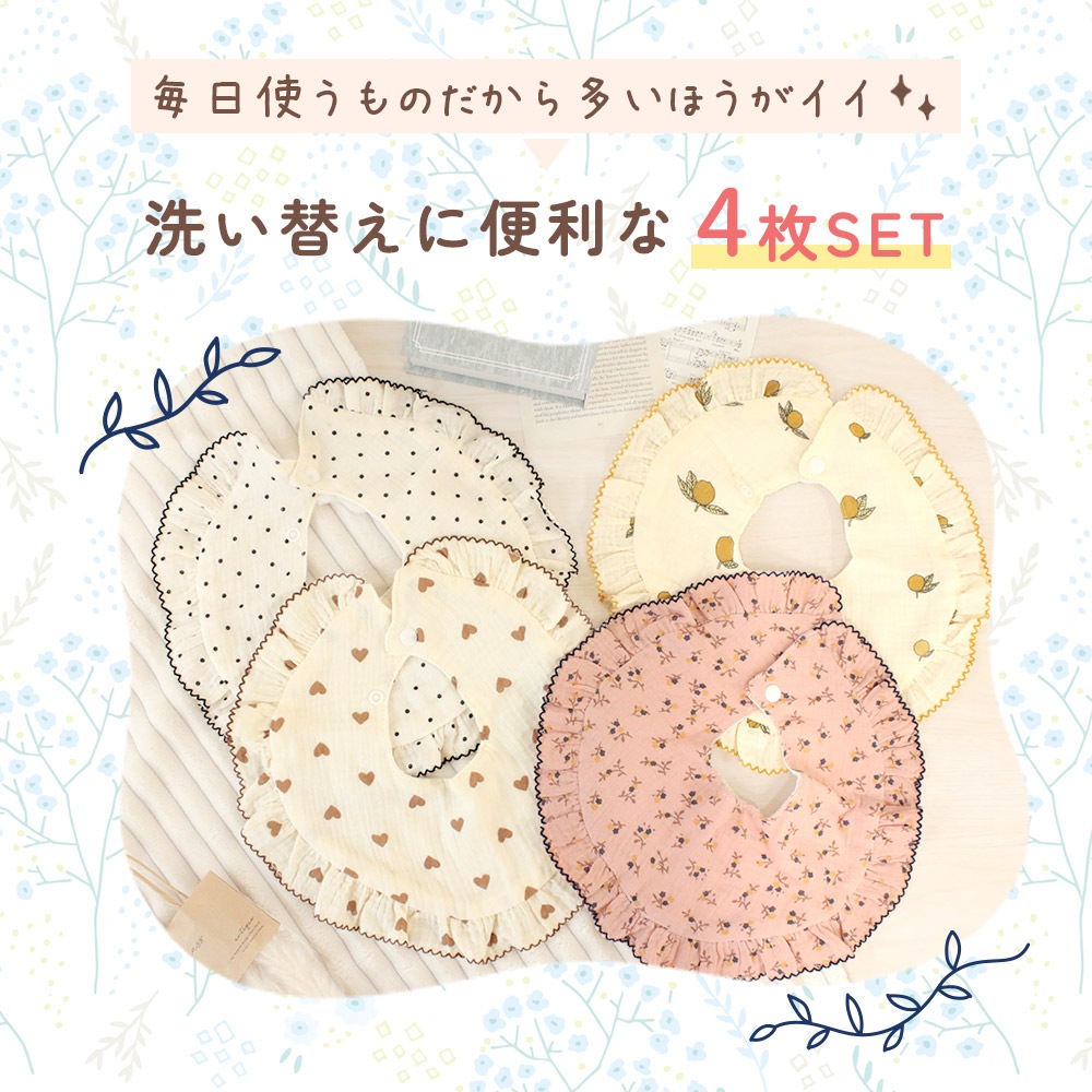 ガーゼスタイ 360°カバー 4枚セット よだれかけ お食事エプロン 男の子 女の子 ビブ おしゃれ かわいい 食べこぼし 汚れ 防止 ベビー用品 コットン100%