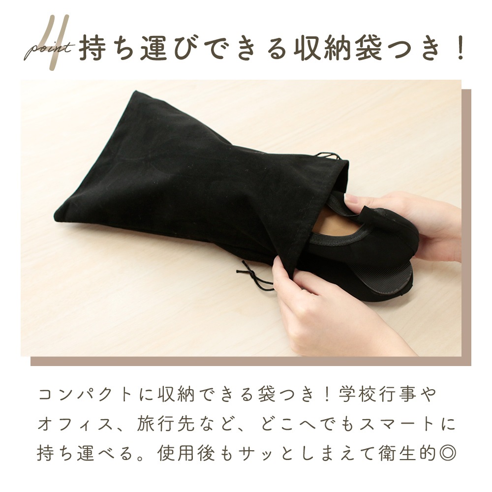 携帯スリッパ 折らない 収納袋付き レディース バンプス 持ち運び 上品 滑り止め かかと付き ポーチ フォーマル MILASIC