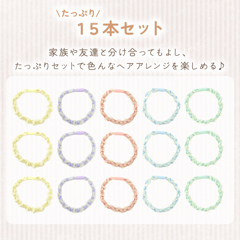 オーガンジー 生地 ヘアゴム 15本セット 痛くない ポニーテール 絡まない まとめ髪 卒園式 卒業式 入学式 入園式 学校 MILASIC