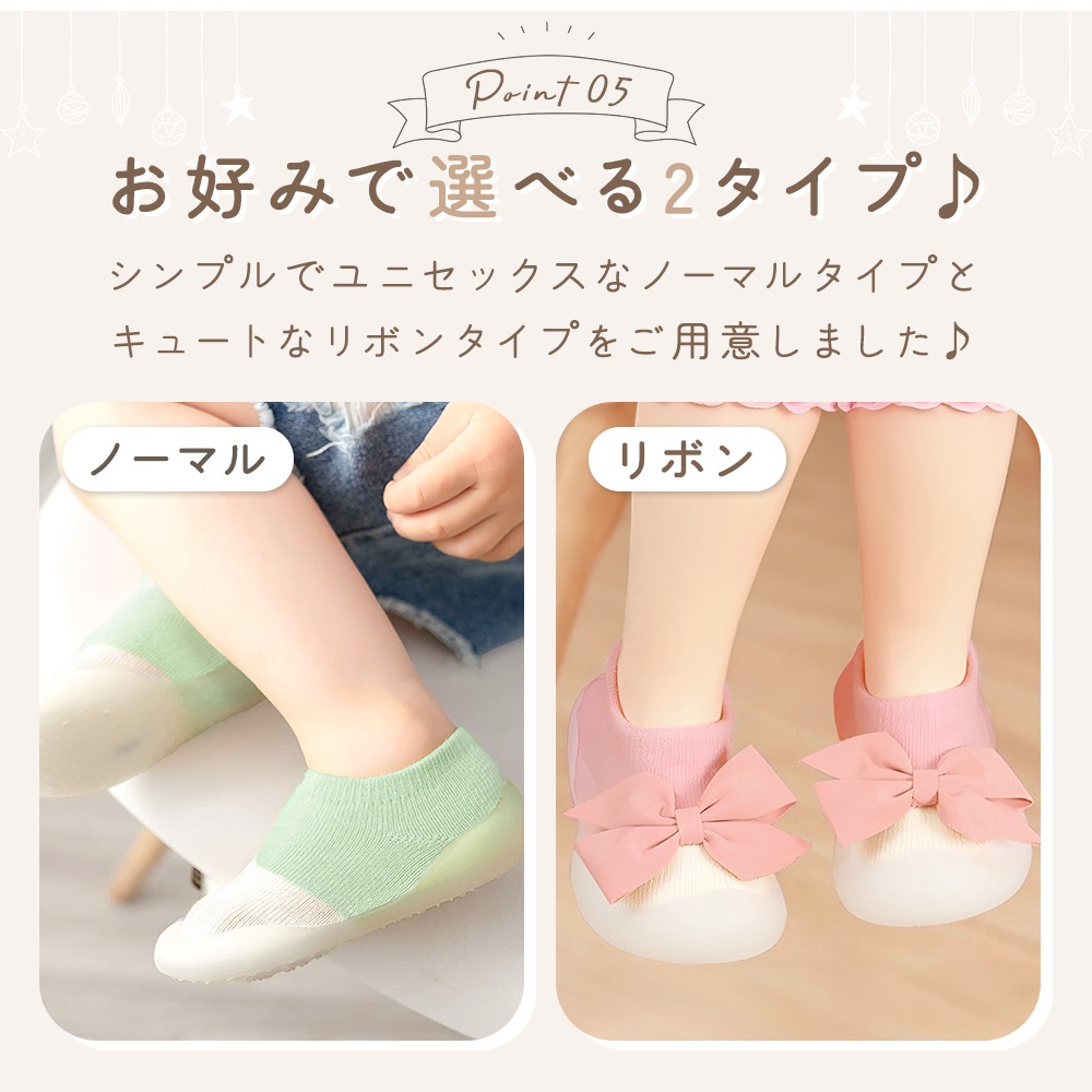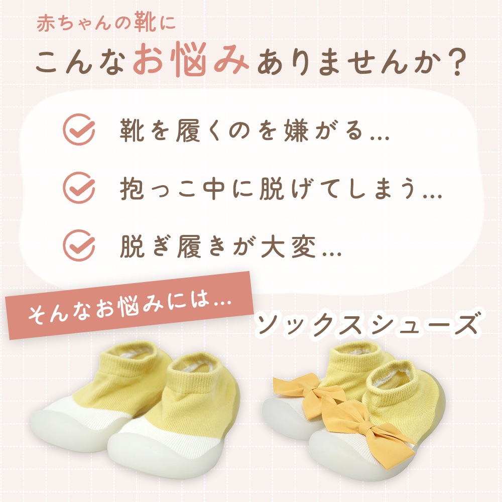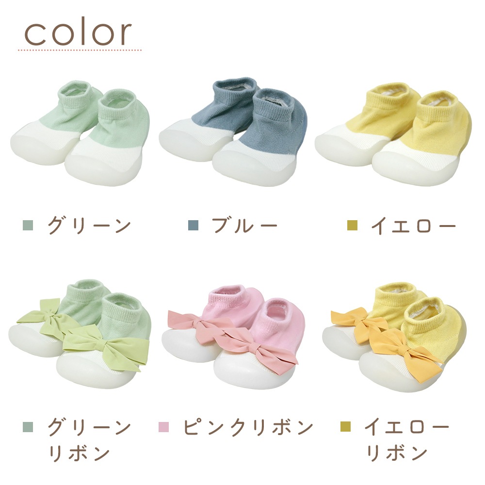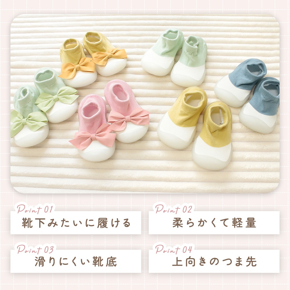 ベビーソックスシューズ ツートン ソックスシューズ ソックス リボン かわいい カラー 12.5cm 靴下 滑り止め ルームシューズ 赤ちゃん ファーストシューズ