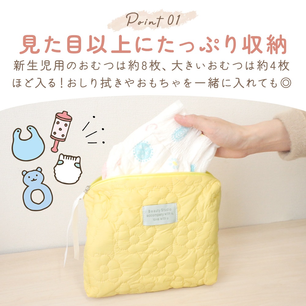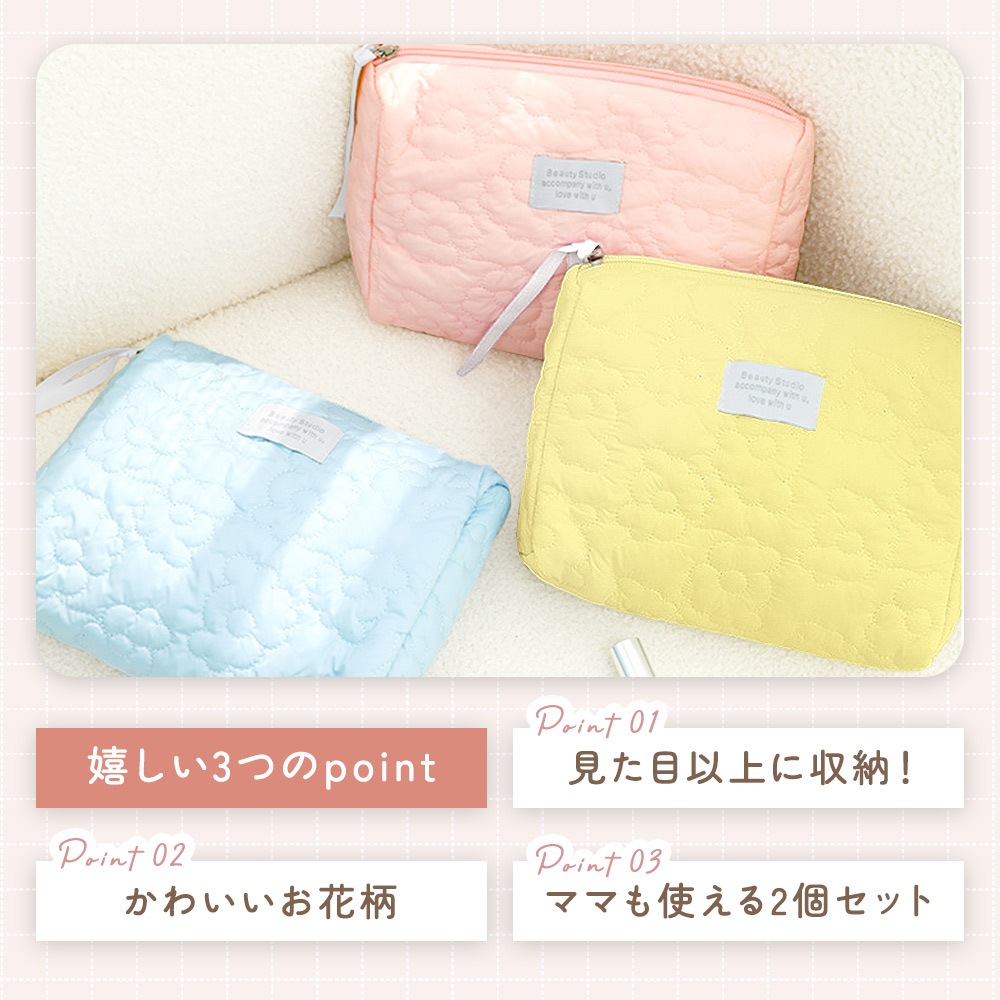 キルティングポーチ 大小2個セット かわいい ふわふわ あかちゃん ベビー ママ レディース おむつ おしり拭き 小物 化粧 メイク キルト 大容量 フラワー 贈り物