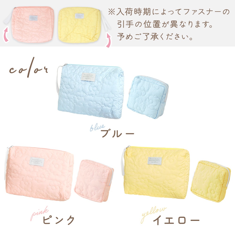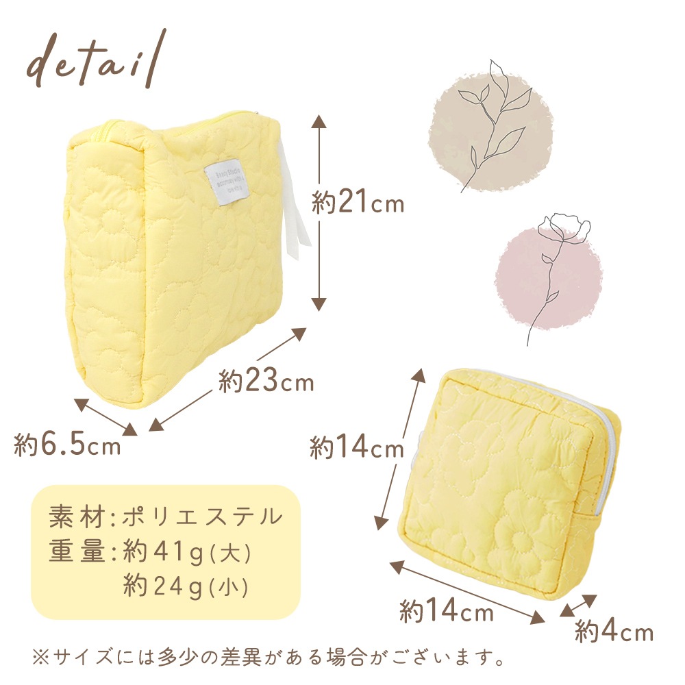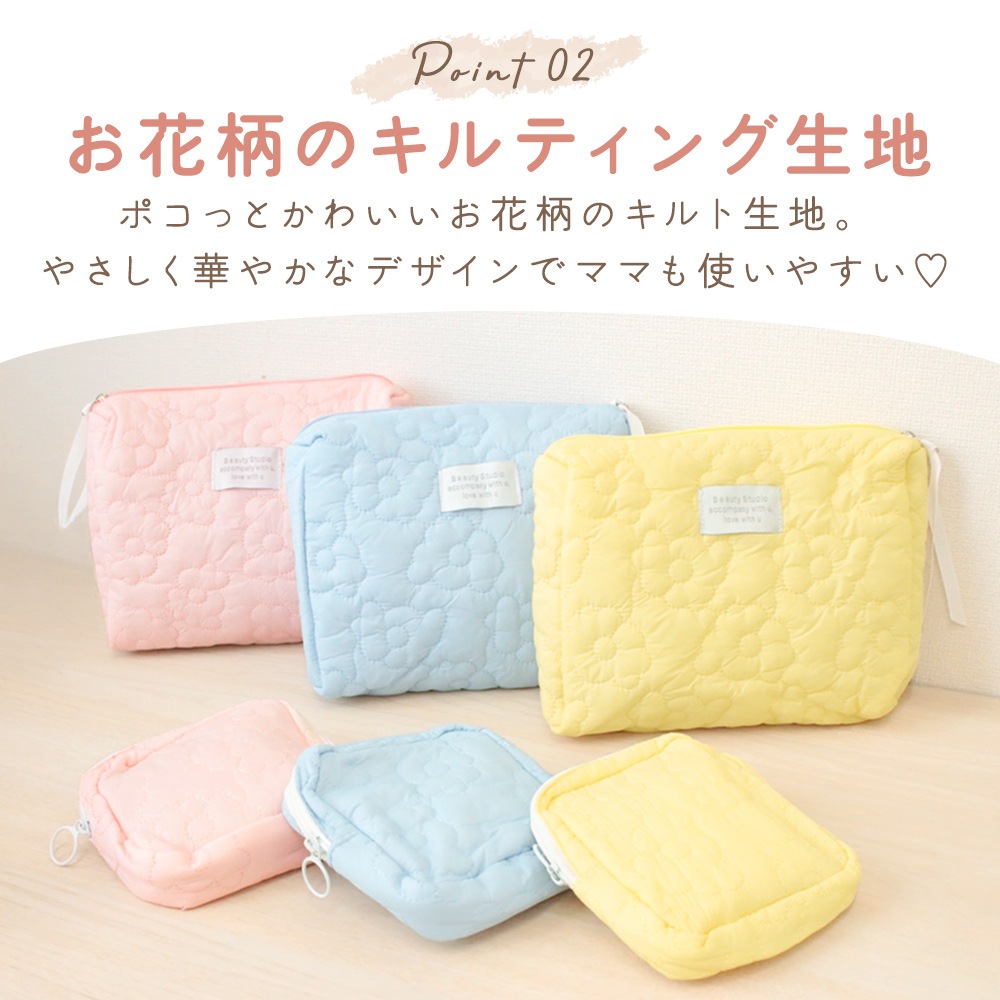 キルティングポーチ/おむつポーチ/おしり拭き/小物入れ/大きめ/小さめ/化粧ポーチ/メイクポーチ/ミニポーチ/キルトポーチ/おしゃれ/かわいい/ミニ/大容量/ナイロン/フラワー/花柄/キルト素材/キルティング/ふわふわ/ふっくら/スクエア/トラベルポーチ/大人/通勤/横長/マチ付き/生理用品/2サイズセット/あかちゃん/ベビー/こども/ママ/母親/レディース/プレゼント/贈り物