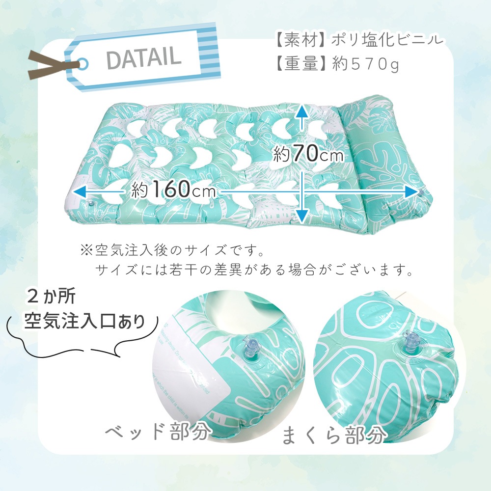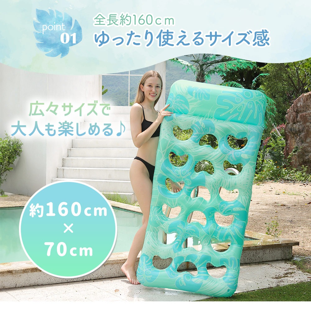 フロートベッド/ボード/マット/浮き輪/水上/浮き具/大きい/大人/フローティング/ビッグ/夏/プール/海/ビーチ/160cm/枕付き/まくら/リラックス/サマーベッド/SNS/インスタ映え/海水浴/アウトドア/エアマット/おもちゃ/ゆらゆら/のんびり/くつろぎ/おしゃれ/かわいい/レジャーマット/マットレス/ウォーターハンモック/うきわ