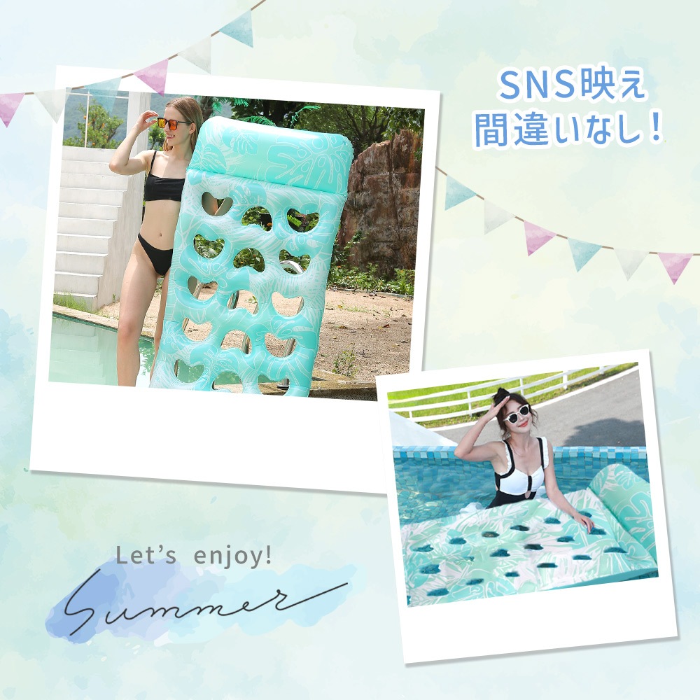 フロートベッド かわいい マット 浮き輪 浮き具 フローティング 大きい 大人 夏 プール 海 アウトドア 160cm 枕 リラックス SNS インスタ映え ゆらゆら おもちゃ