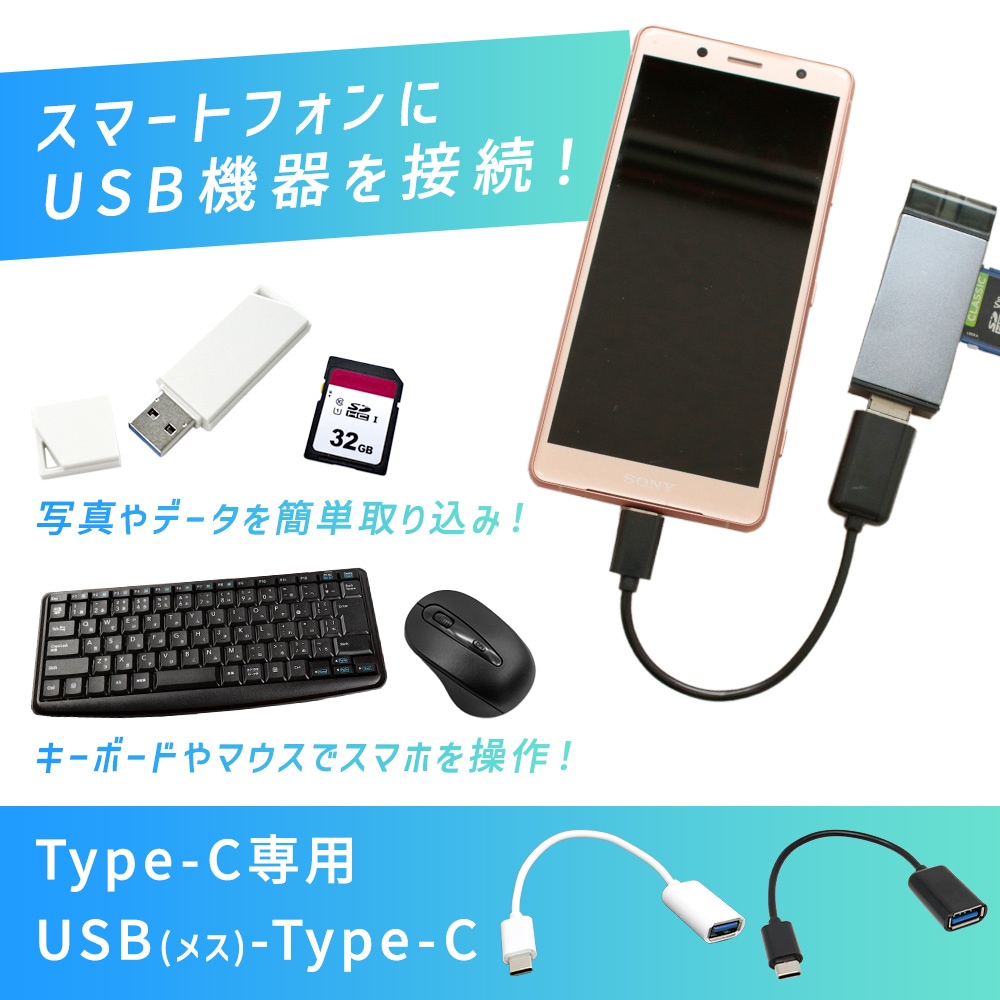 USB変換ケーブル/USBメス-USB Type-Cオス/変換/USB Type-Cケーブル/USB/Type-C/変換ケーブル/アダプター/データ転送/スマホ/スマートフォン/RC-USBF-TC