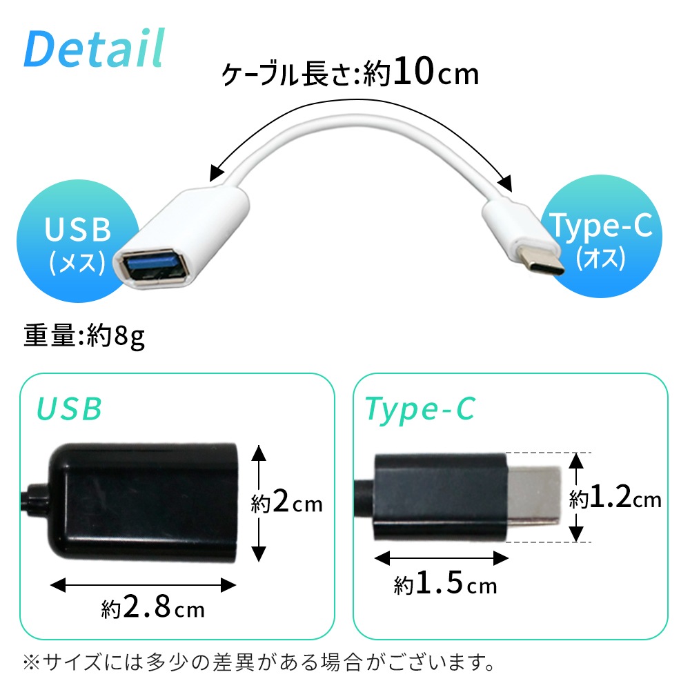 送料無料 USB変換ケーブル USBメス-Type-Cオス 変換 Type-Cケーブル USB Type-C 変換ケーブル アダプター データ転送 スマホ スマートフォン RC-USBF