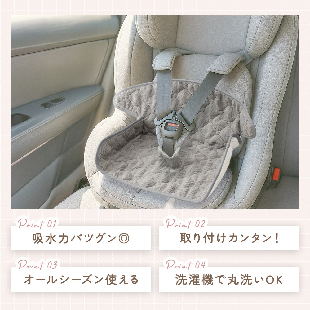 防水性と吸水性を兼ね備えた設計で、チャイルドシートやベビーカーの座面を清潔に保ちます。