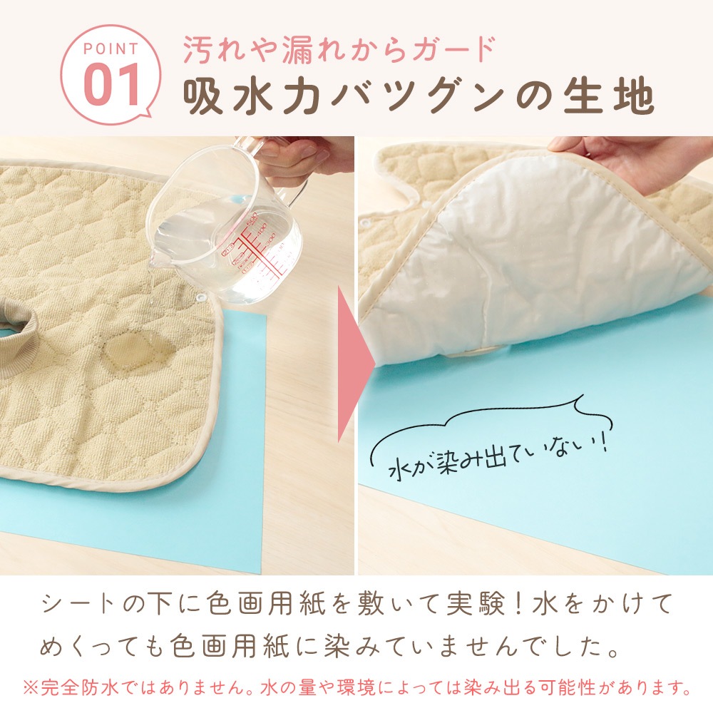 防水加工された生地が、おしっこや飲み物のこぼれをしっかりガード。