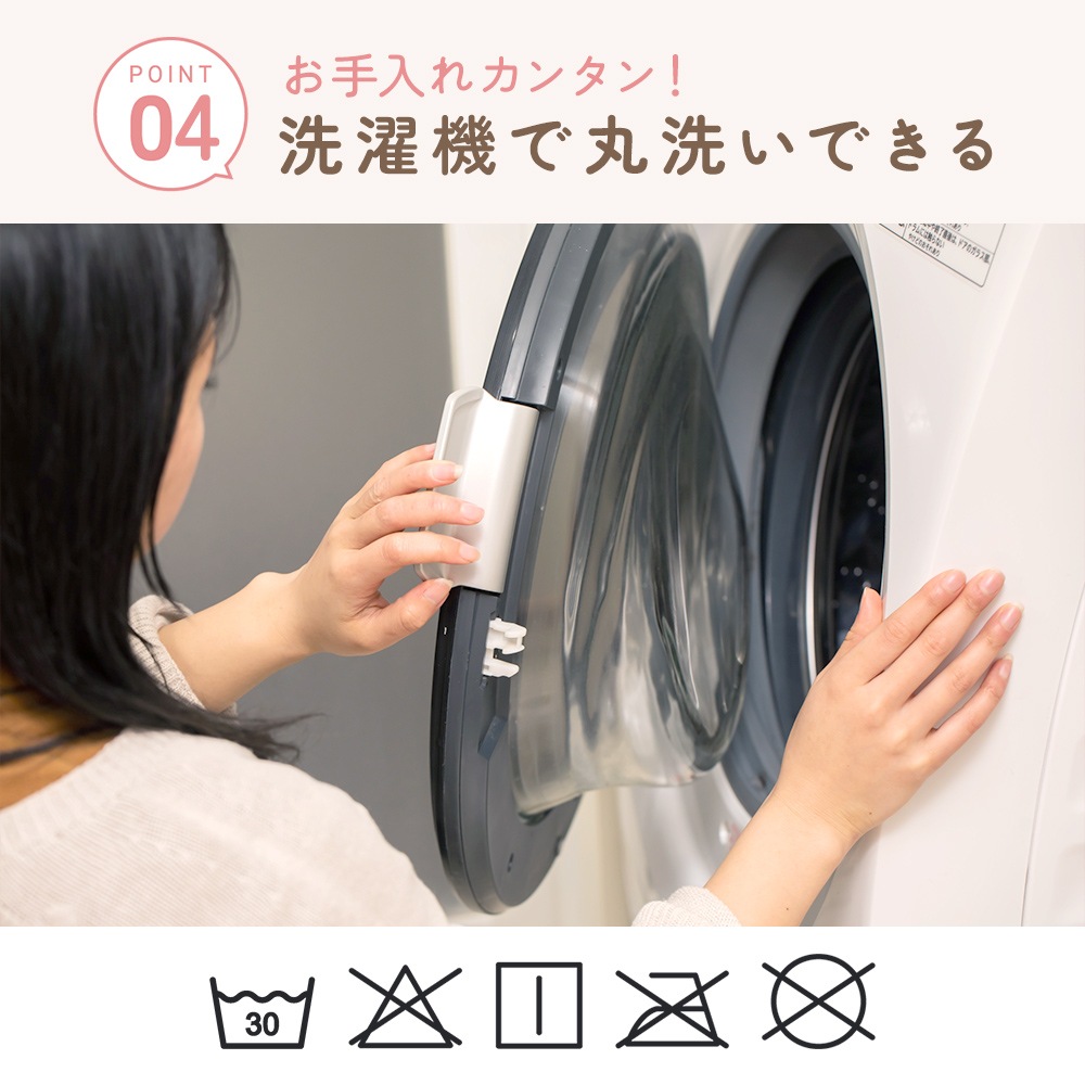 洗濯機で丸洗いできるので、いつでも清潔を保てます。