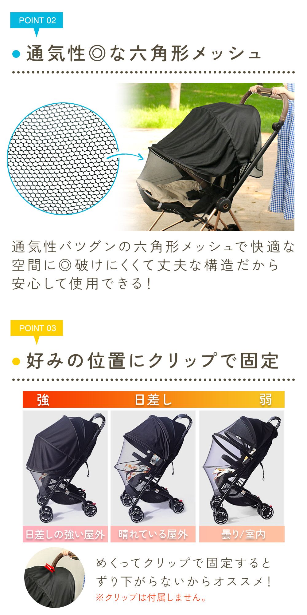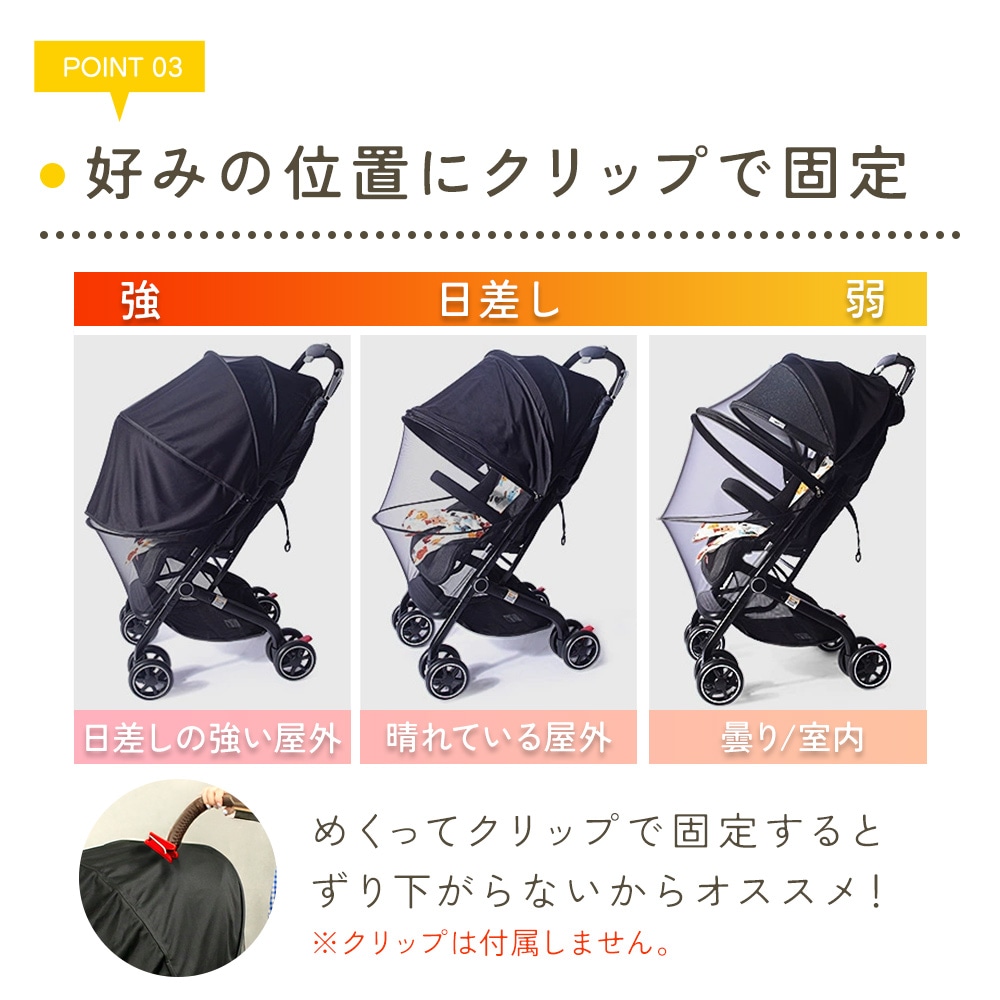 ・赤ちゃんを夏の強い日差しや虫から守るベビーカー用サンシェード
