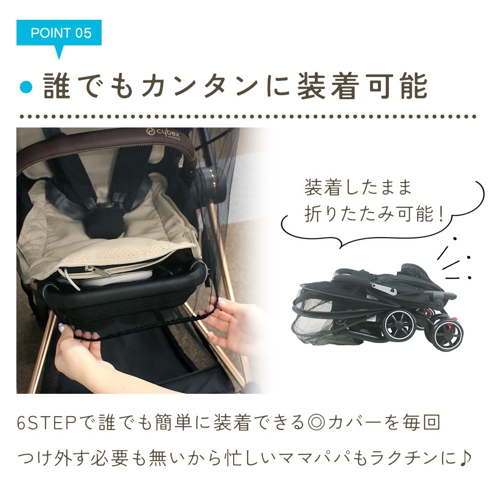 赤ちゃんの快適さと安全を第一に考えた設計で、ベビーカーにプラスするだけで安心感がアップ。