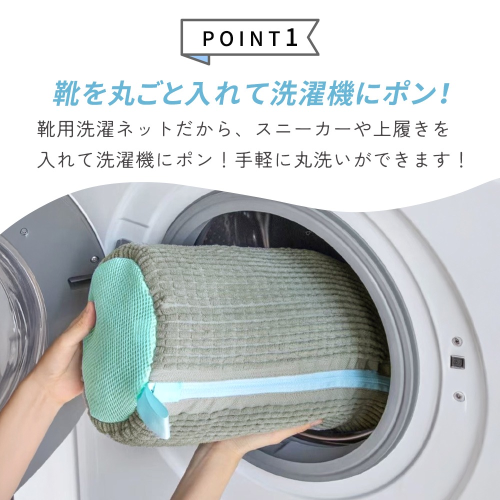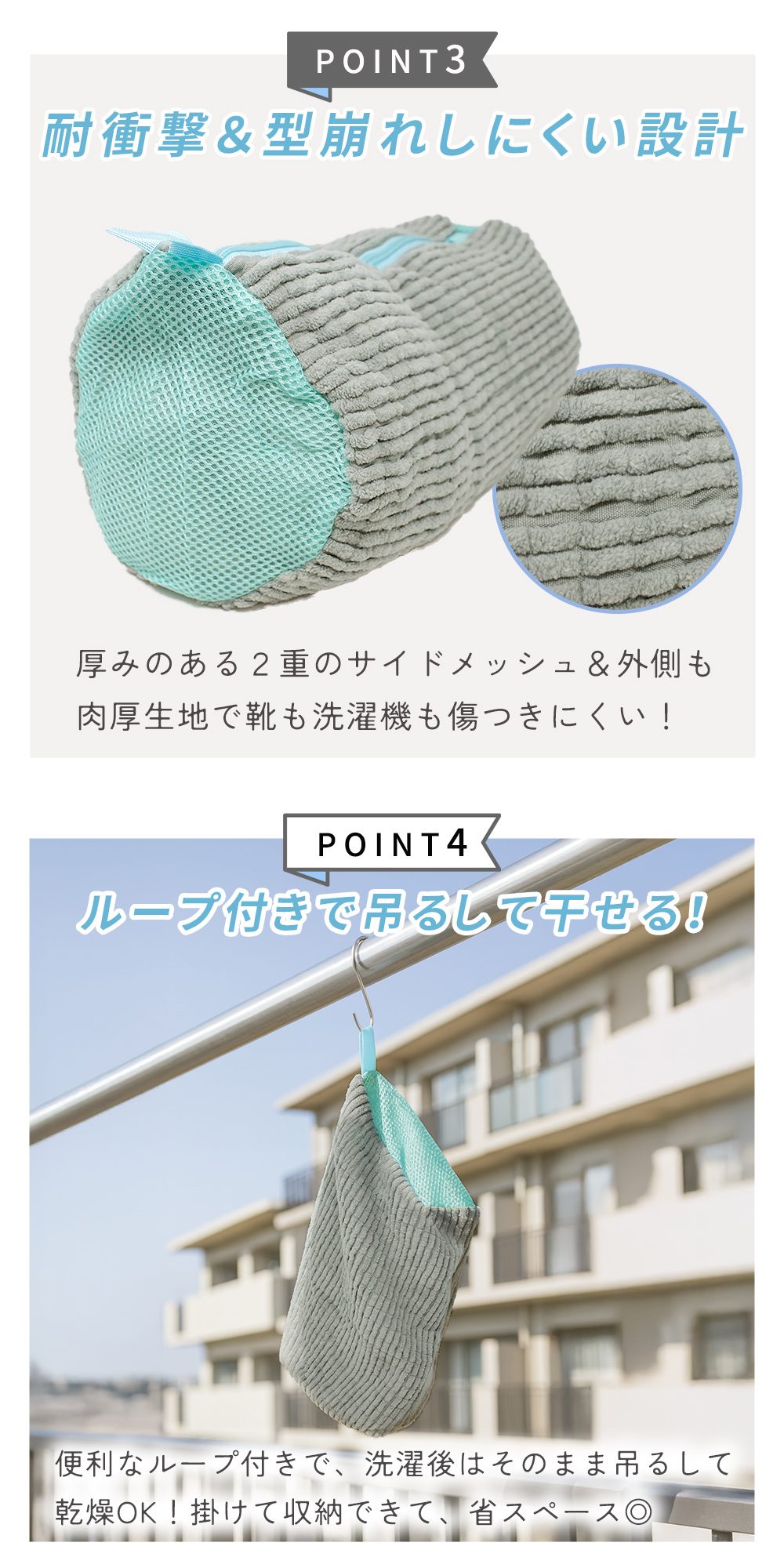 靴用洗濯ネット 2枚セット スニーカー 運動靴 丸洗い ドラム式対応 モップ状 衝撃吸収 型崩れ防止 ループ付き そのまま吊せる メッシュ 学校 部活 洗濯 清潔