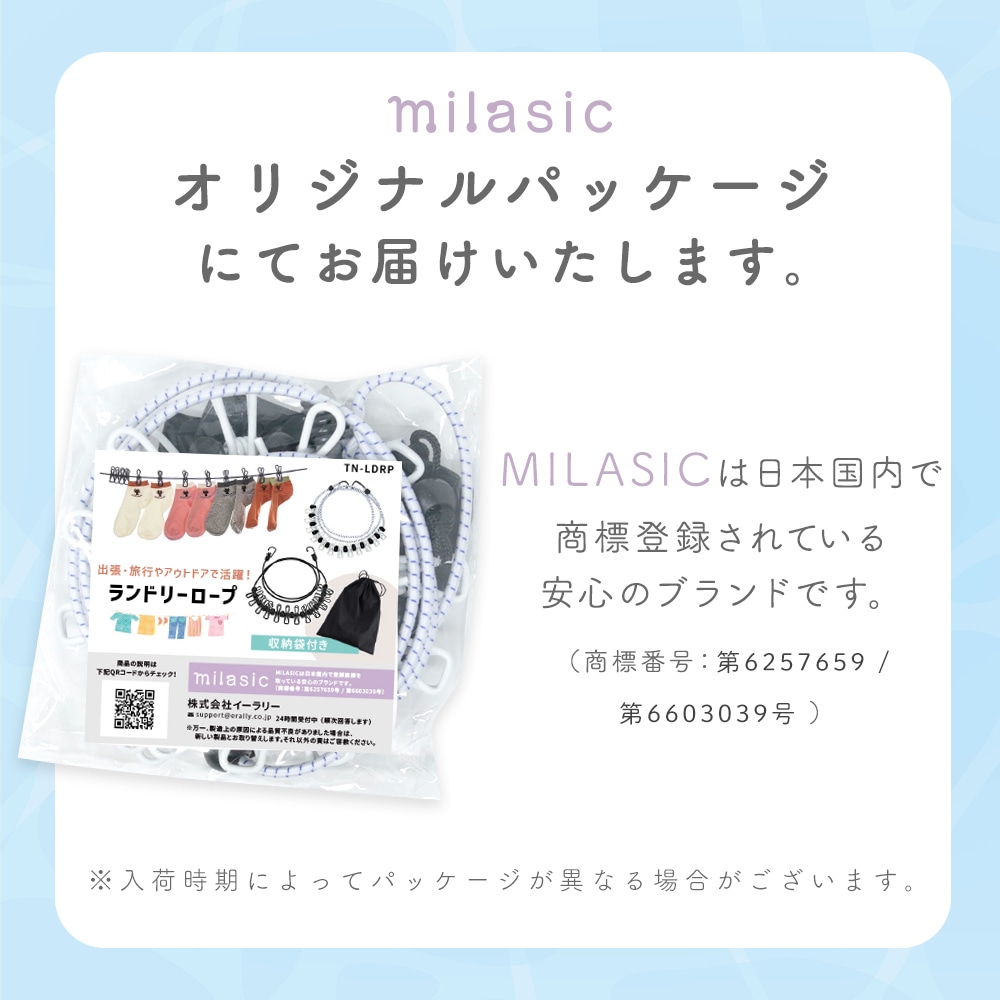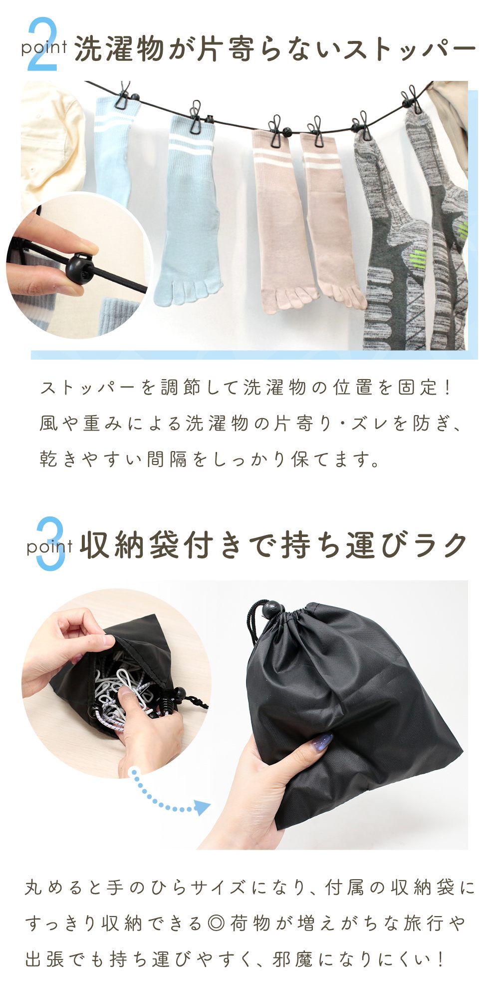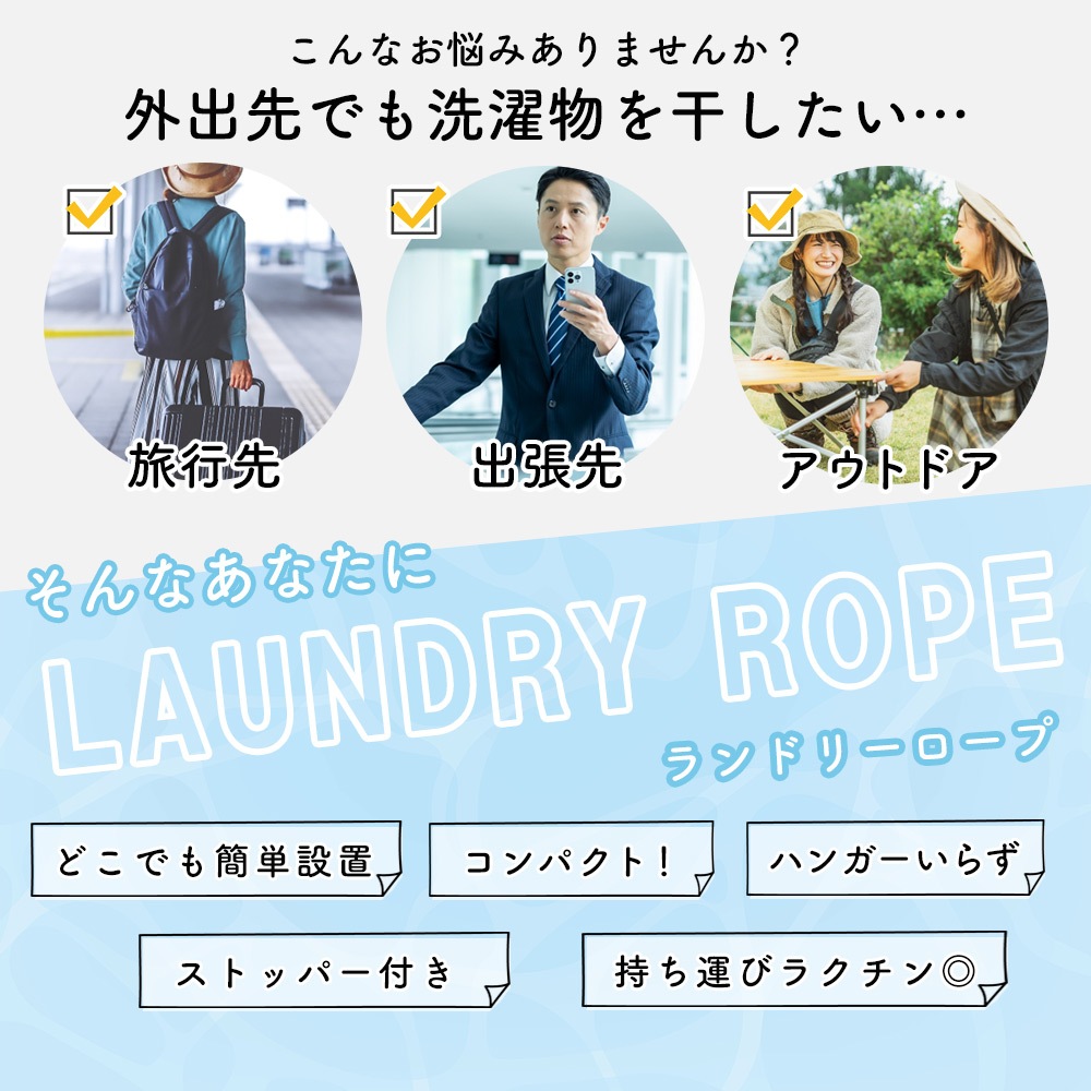 ・旅行や出張に便利な収納袋付きランドリーロープ