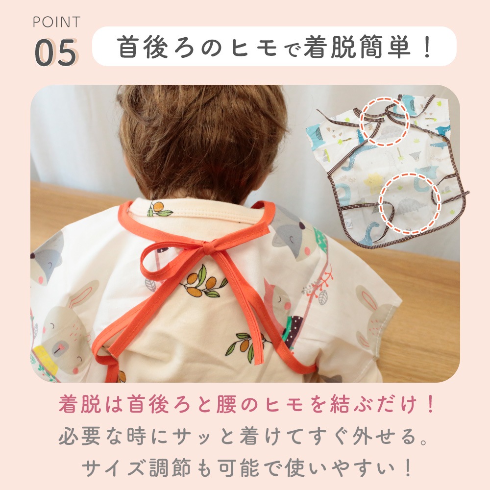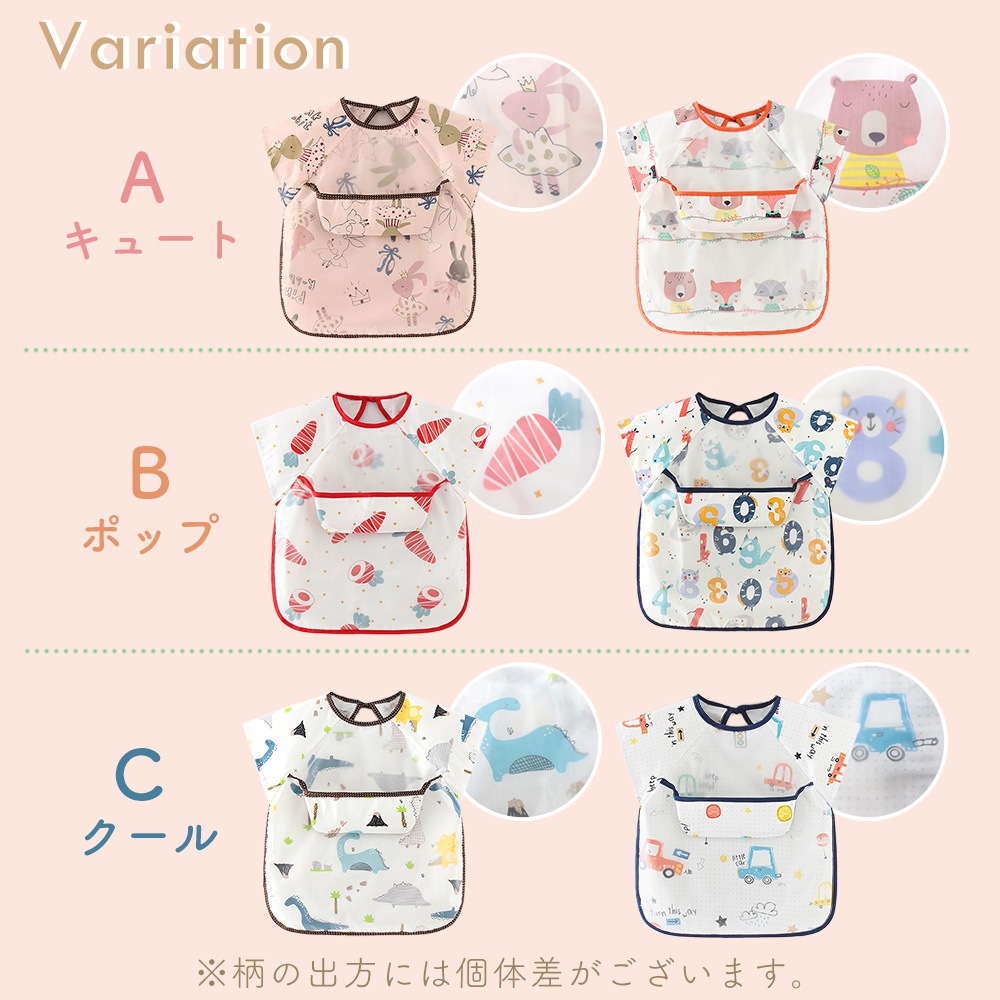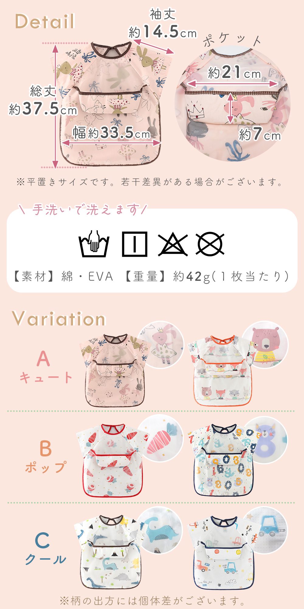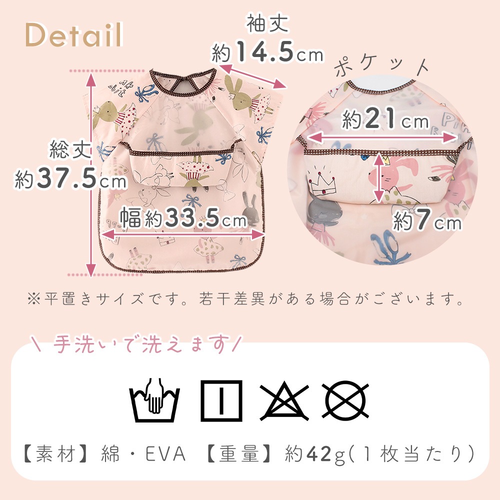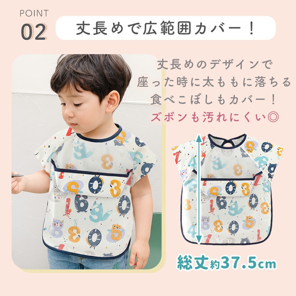 お食事エプロン 半袖 丈長め 2枚セット ベビーエプロン 2枚 長め 半袖 スタイ ベビー ベビースタイ おしゃれ かわいい 撥水 紐 ヒモ 調整可 食べこぼし 子ども