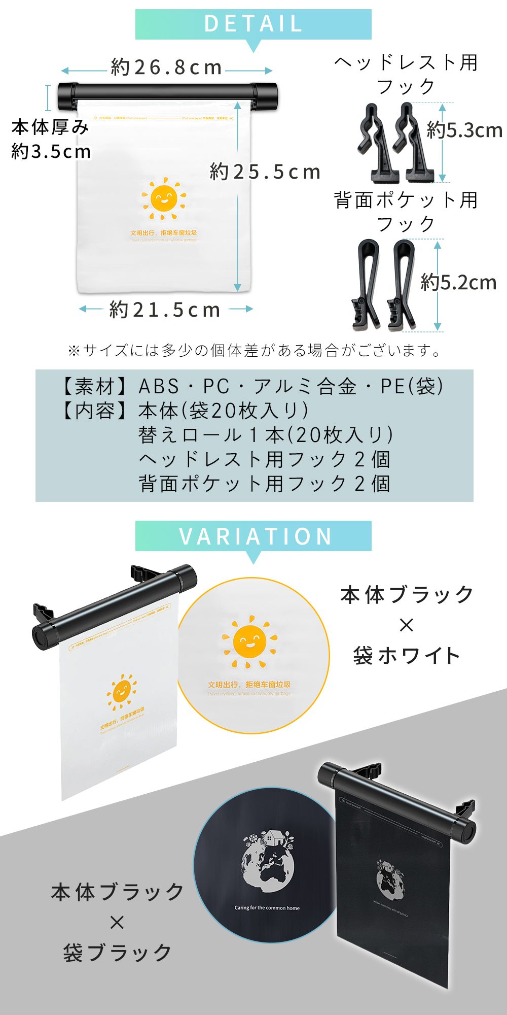車載ローラー式ゴミポケット 調節フック付き おしゃれ 取り付け簡単 省スペース 後部座席 替えロール付 厚手PE 防水 切り取り簡単 使い捨て 車用 ごみ箱 屑入れ