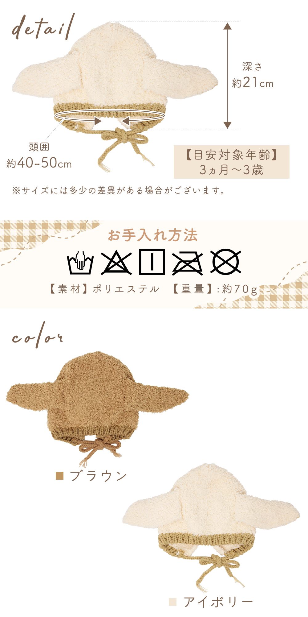 秋冬のお出かけや寒さ対策にぴったりで、赤ちゃんの頭をあたたかく包みます。