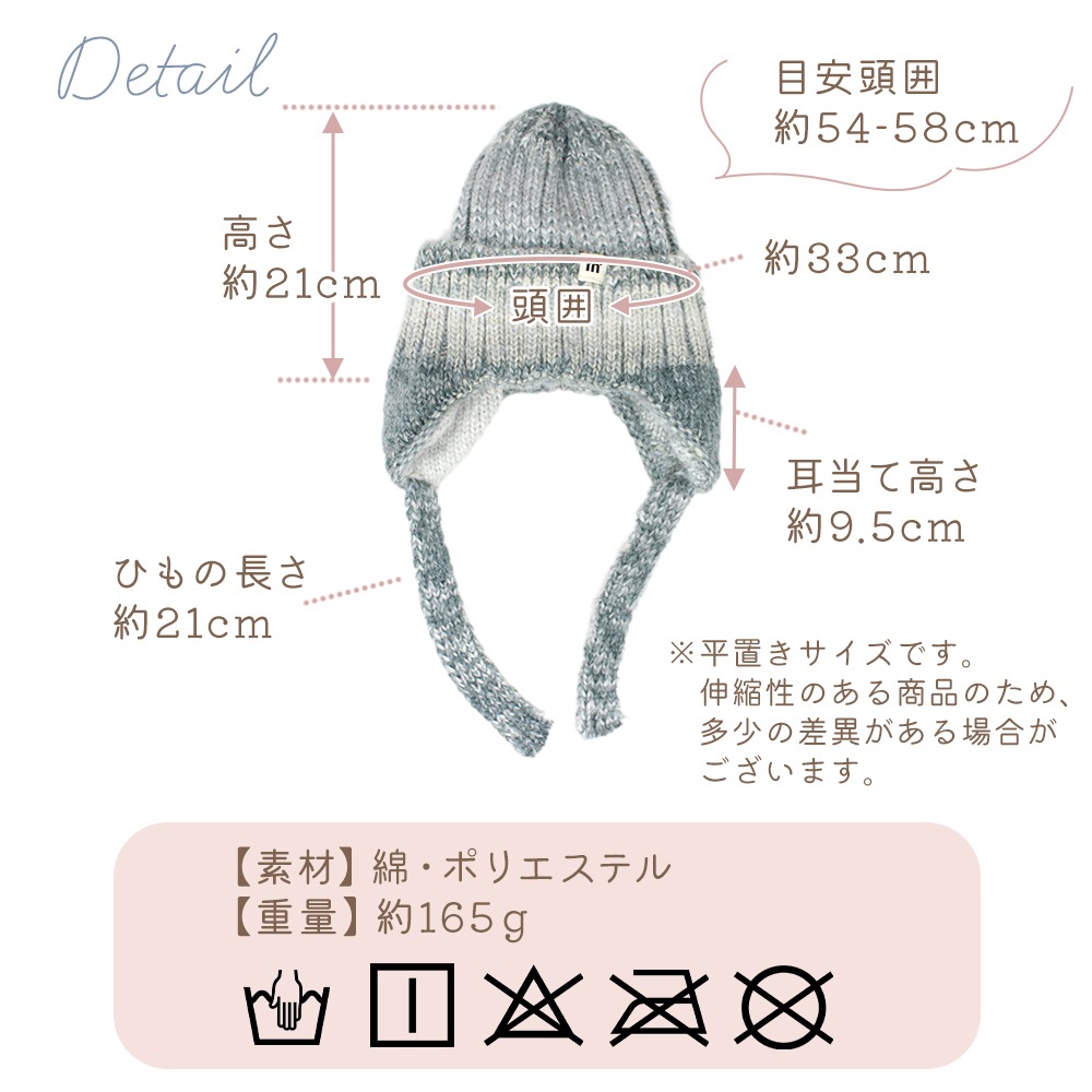 厚みがあるのに重すぎないニット素材を採用。やわらかく頭の形に沿ってフィットし、チクチクしにくい快適設計。保温しながら蒸れにくく、真冬の外出も快適にサポートします。
