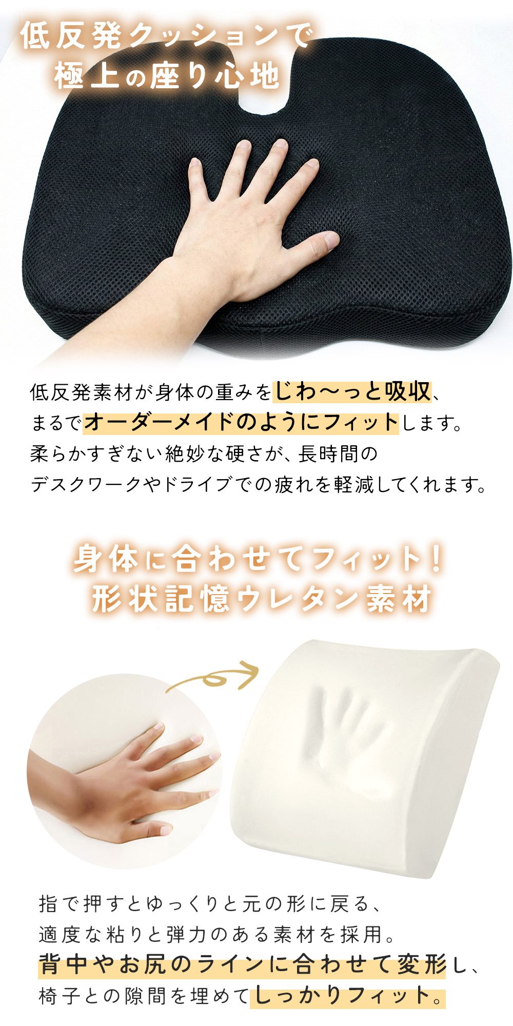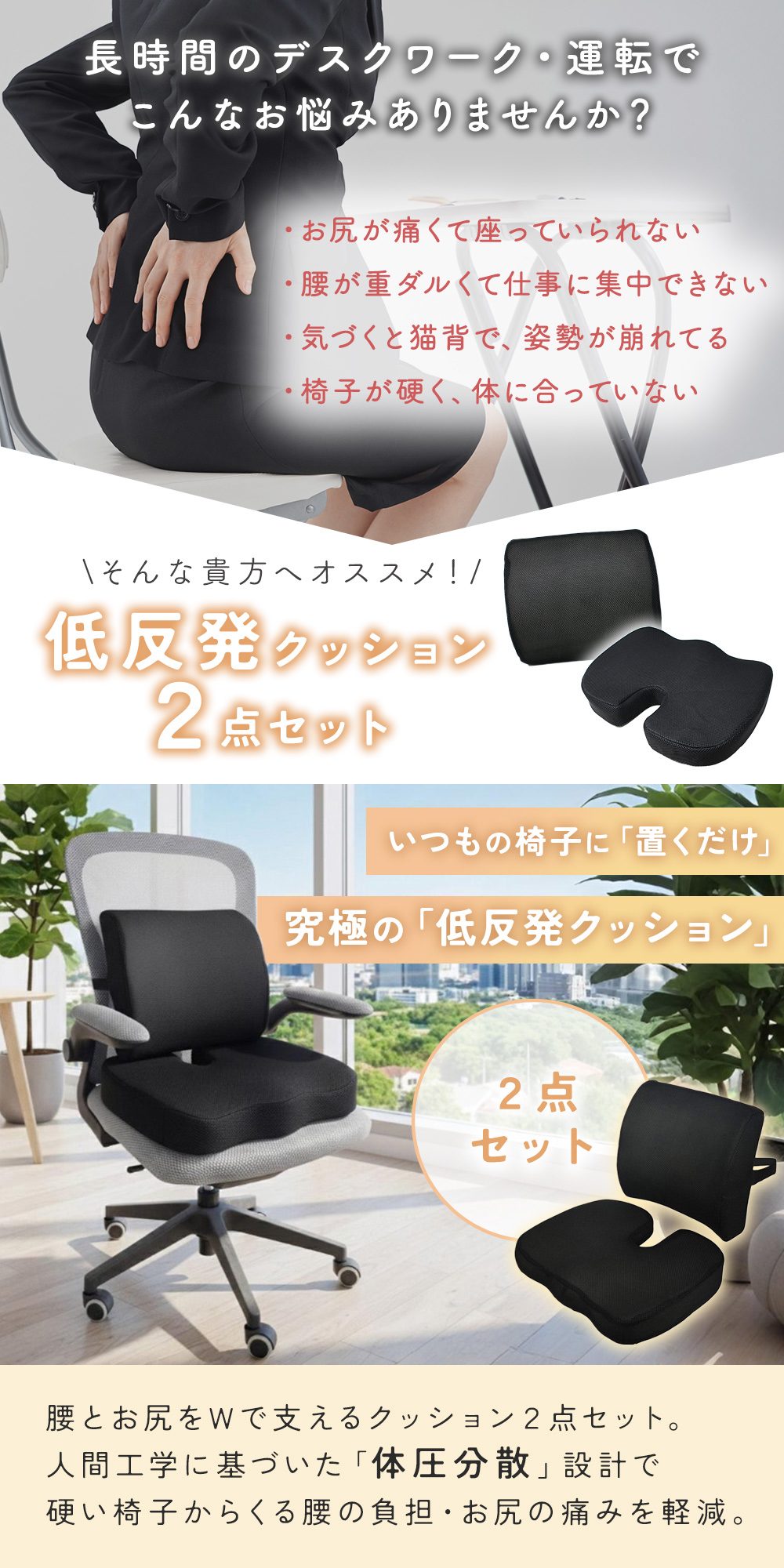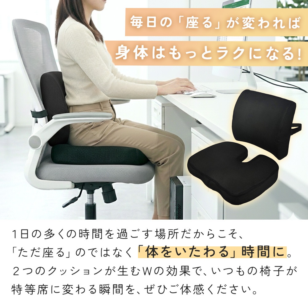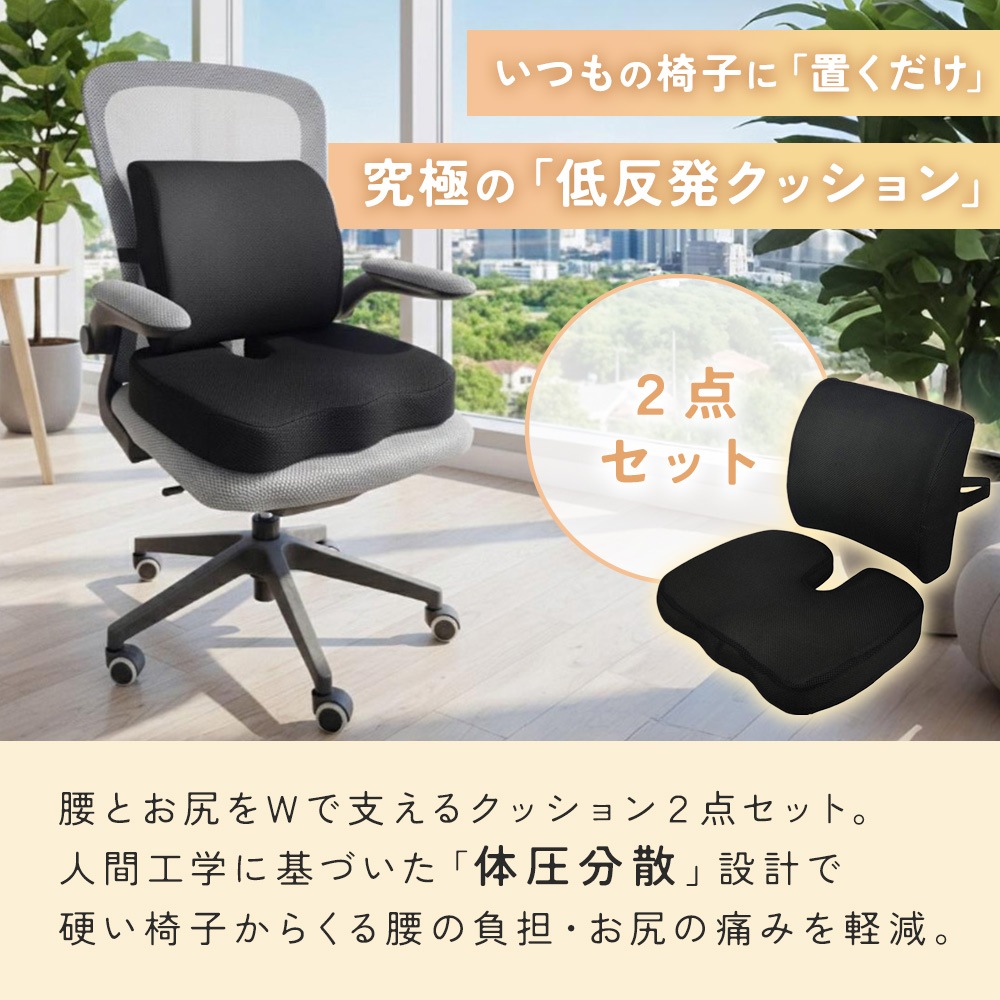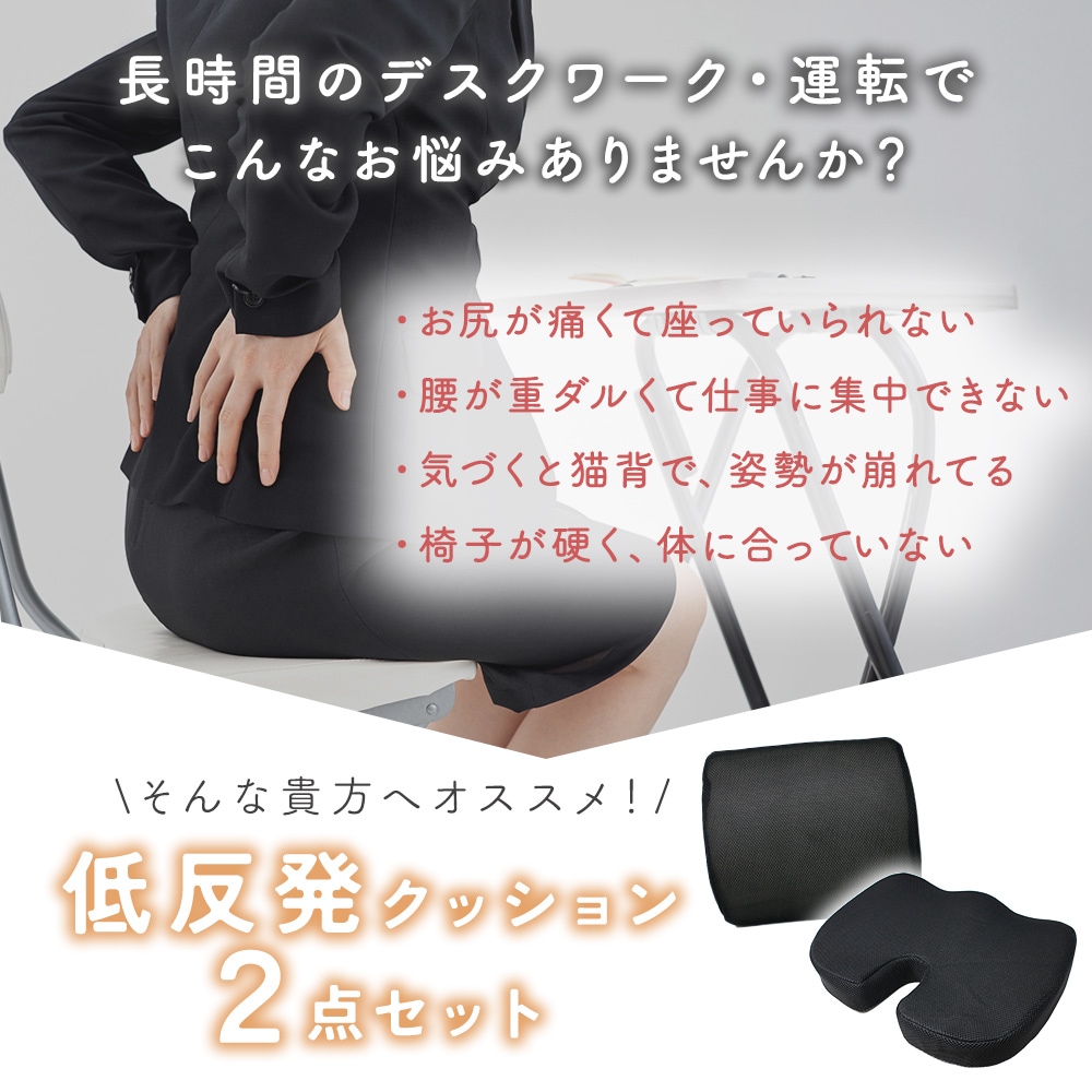・低反発クッション 2点セットで腰とお尻をWサポート