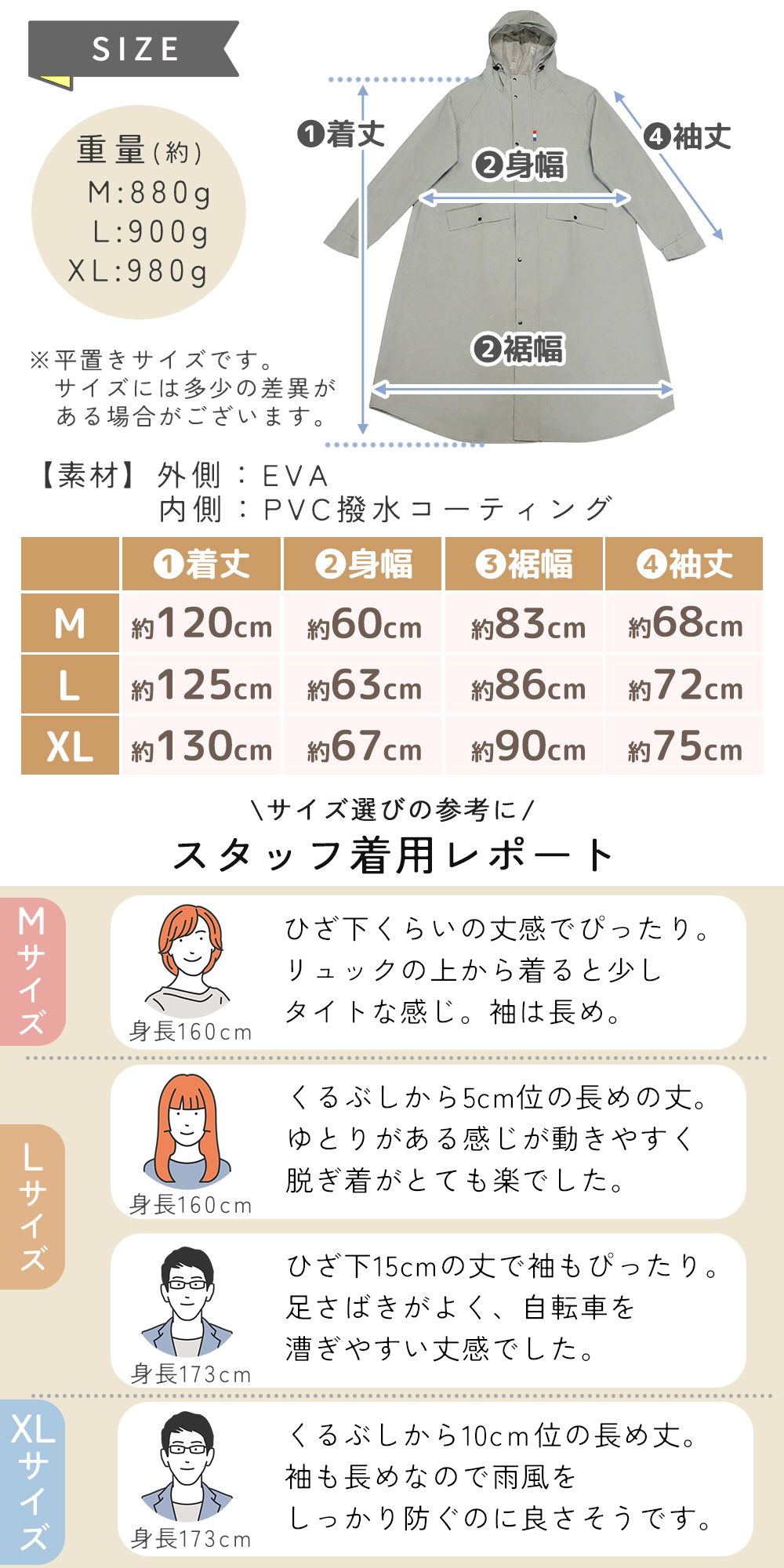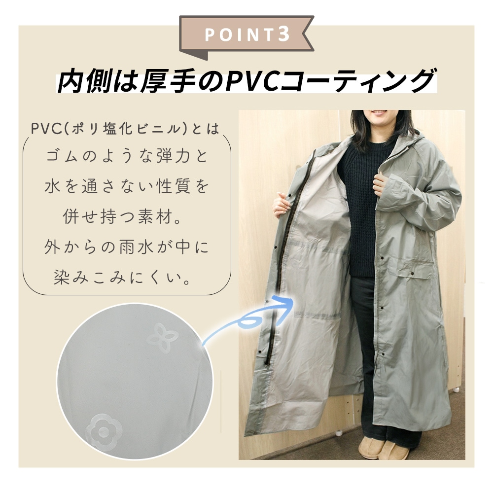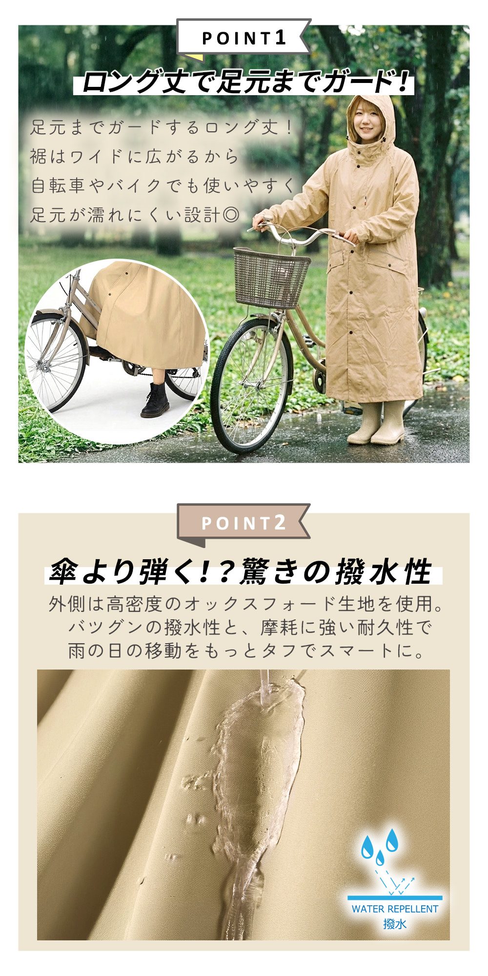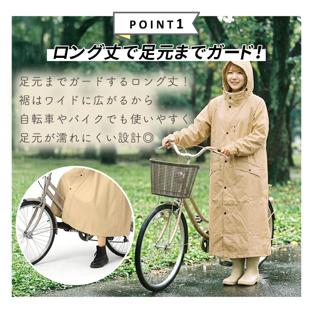 男女兼用レインコート ロング丈 撥水 自転車 バイク レインウェア 雨合羽 オックスフォード生地 PVCコーティング ヘルメット対応 ツバ付きフード リュック 通勤