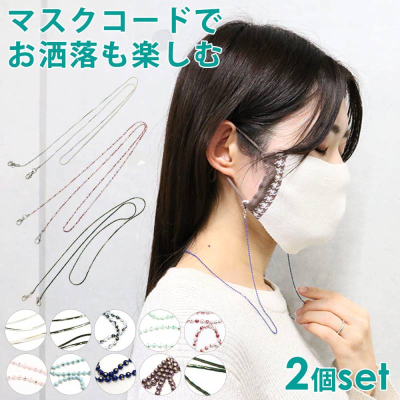 マスクコード 2個 セット ネックストラップ マスクストラップ マスク首掛け マスク紐 パール ビーズ チェーン おしゃれ かわいい 紛失防止 紛失 持ち運び スタイル SNS ファッション マスク用アクセサリー レディース 大人 女子 2本 TN-CDGL799(税込)