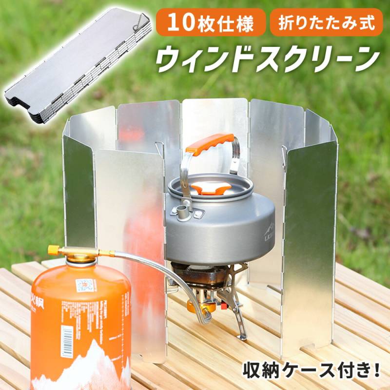 ウィンドスクリーン キャンプ 風防 風除け 風よけ 風防板 アルミ 板 アウトドア コンパクト 折りたたみ 10枚 変形 ペグ 固定 持ち運び 軽量 収納ケース バーベキュー 調理 料理 お湯 沸かし コンロ バーナー 煮炊き 焚き火台 焚き火 連結可能 TN-ODWS1,000(税込)