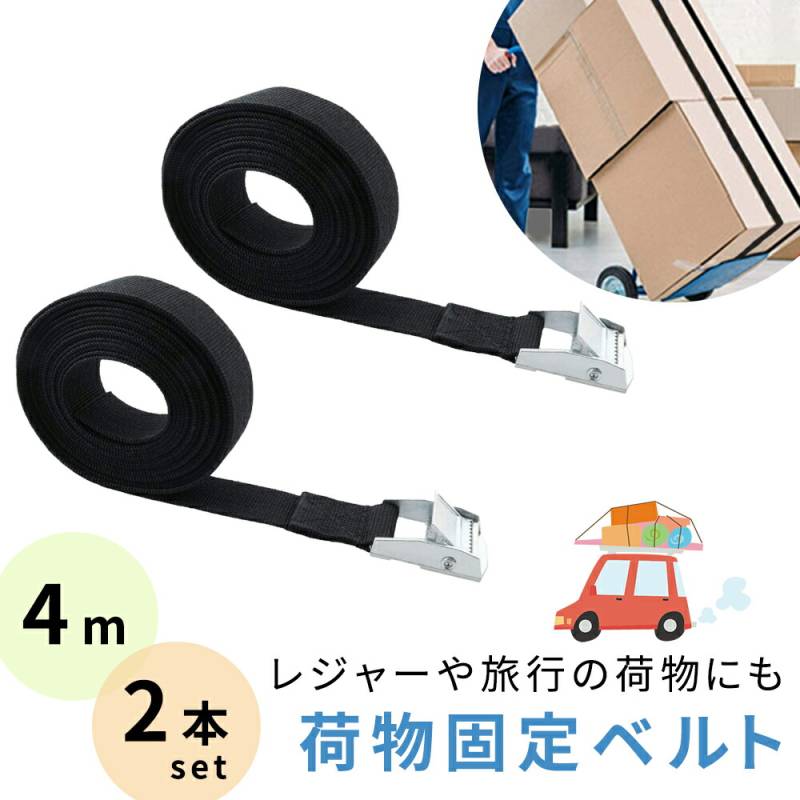 荷締めベルト 4m 黒 2本 セット バックル 固定ベルト 引っ越し シンプル 固定バンド 緩まない 車 自動車 バイク ツーリング 荷物 固定 荷物固定 安全 荷締め ベルト バックル 金具 運搬 調節可能 荷崩れ防止 転倒防止 家具 棚 バックル式 キャンプ TN-LDGB251,000(税込)
