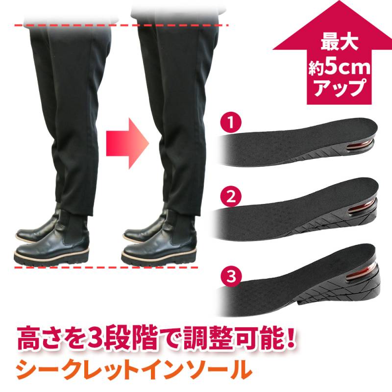 シークレットインソール 22.5cm~27.0cm レディース メンズ 最大5cm 三段階調整 男性 女性 シークレット 調整可能 かかと ブーツ スニーカー 美脚効果 脚長 おしゃれ 上げ底 あげ底 中敷き エアーインソール エアインソール 冬靴 冬物 冬 ER-SCIS-ME1,000(税込)
